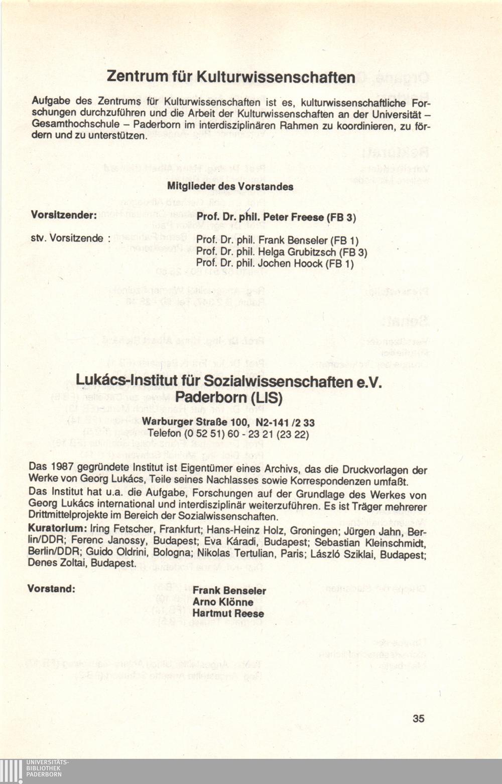 Personal- und Vorlesungsverzeichnis für die Universität Paderborn