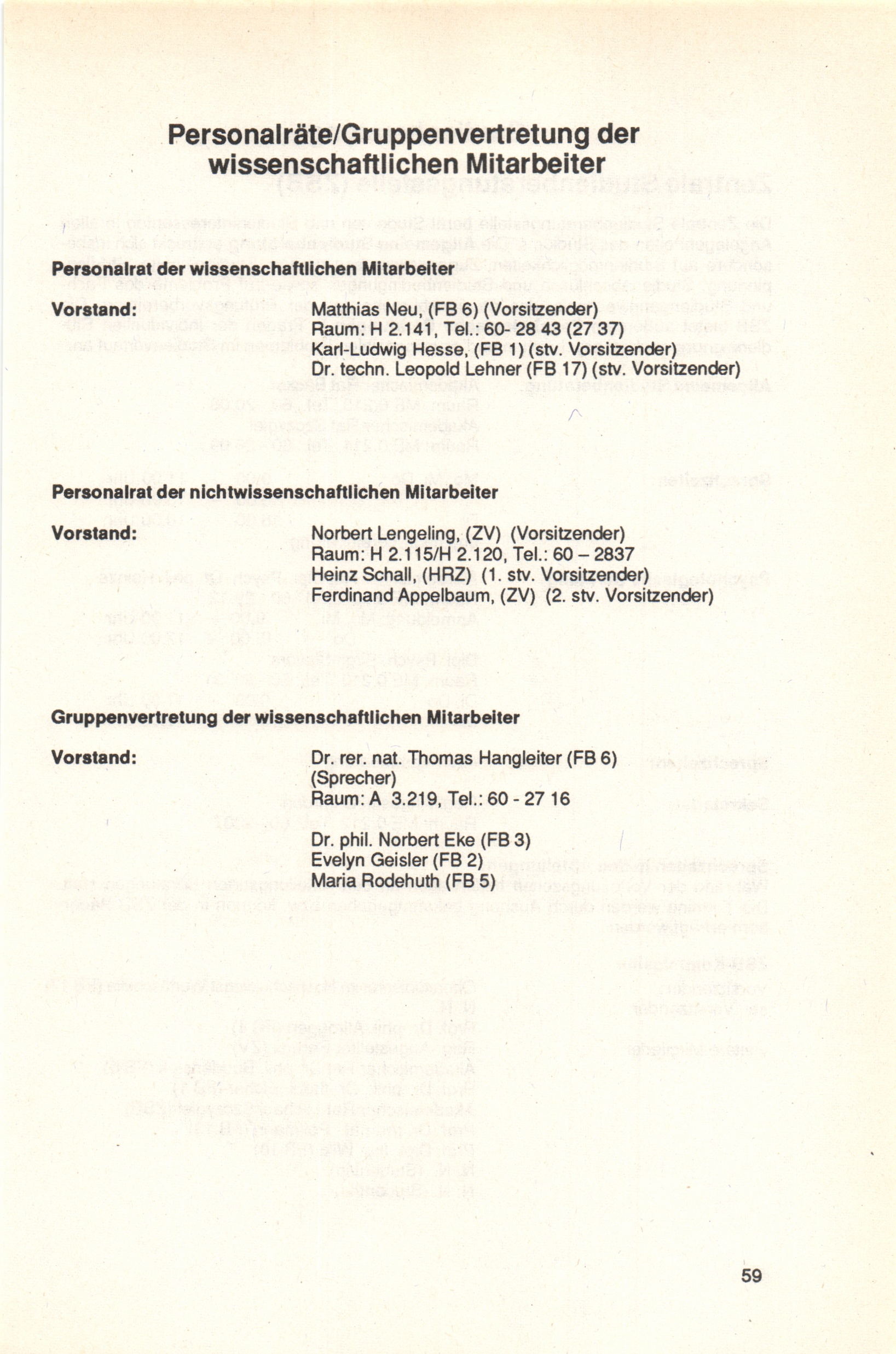 Personalräte/Gruppenvertretung der wissenschaftlichen Mitarbeiter