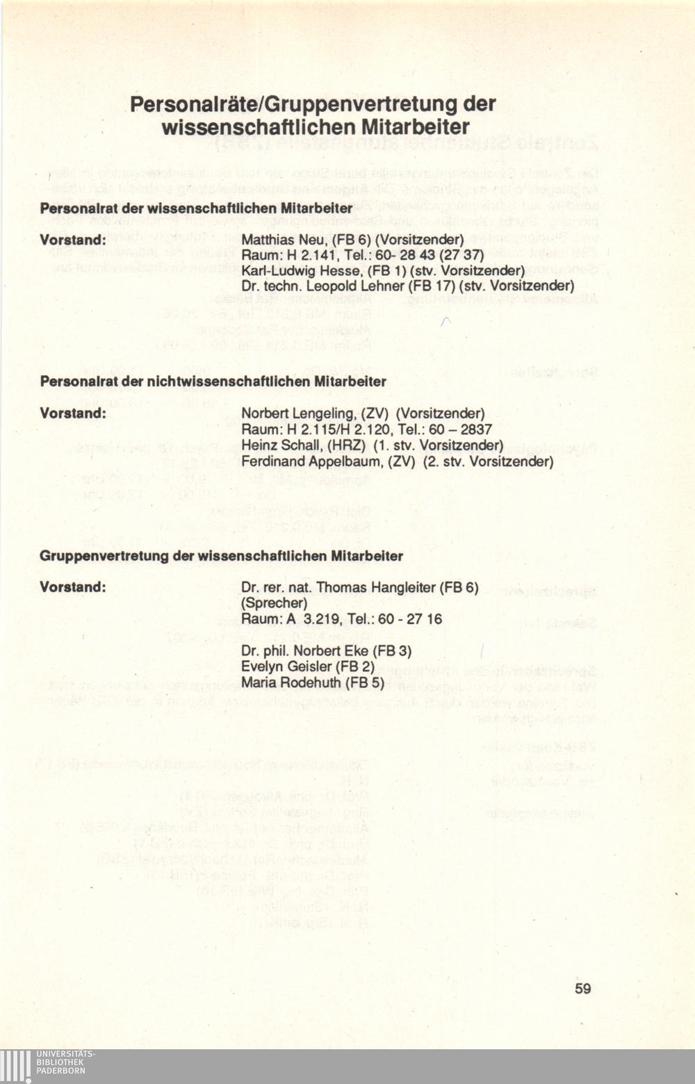 Personal- und Vorlesungsverzeichnis für die Universität Paderborn