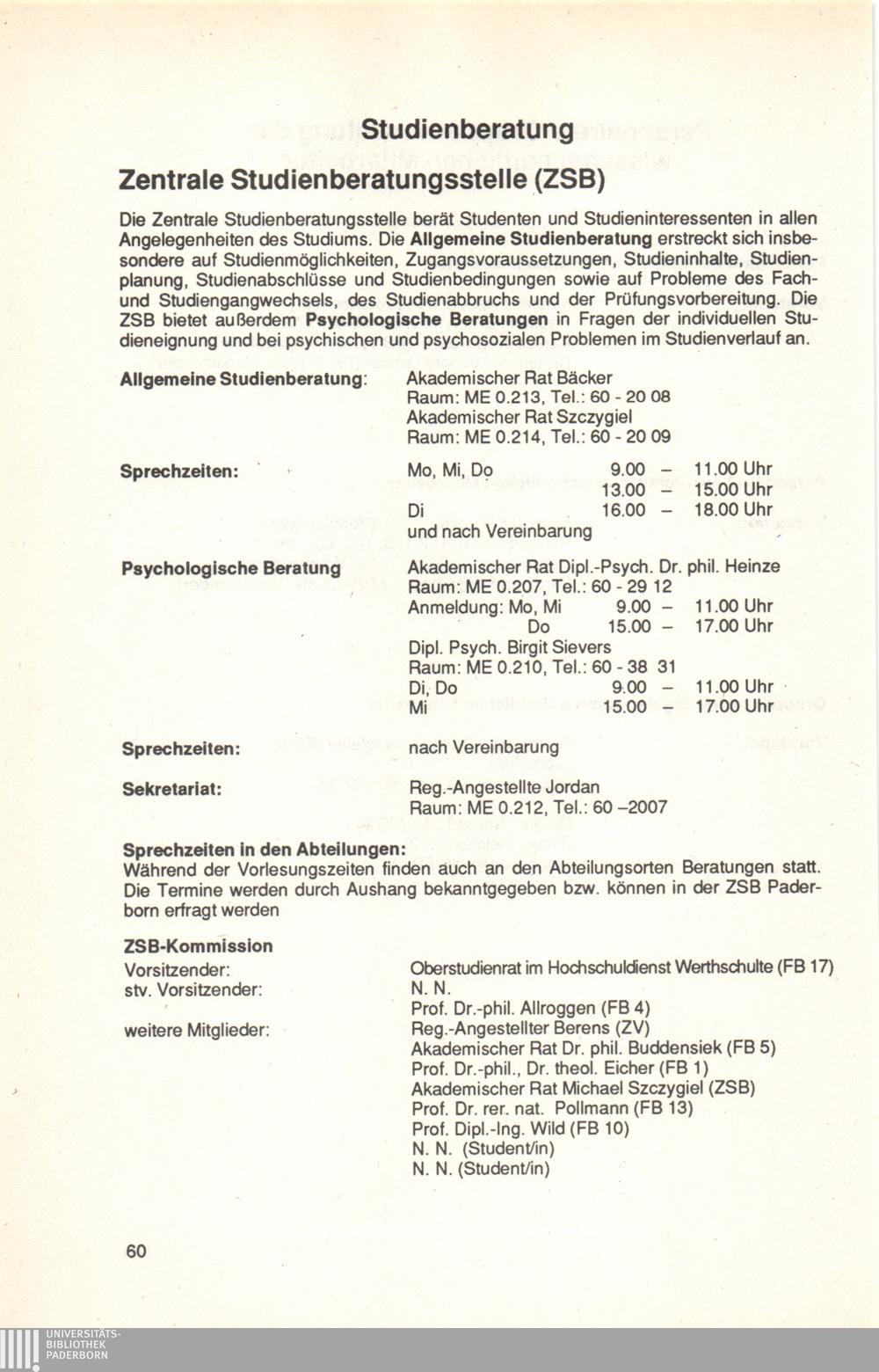 Personal- und Vorlesungsverzeichnis für die Universität Paderborn