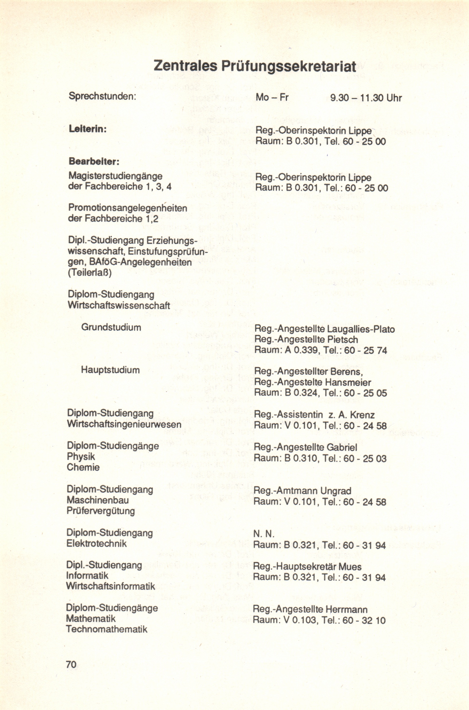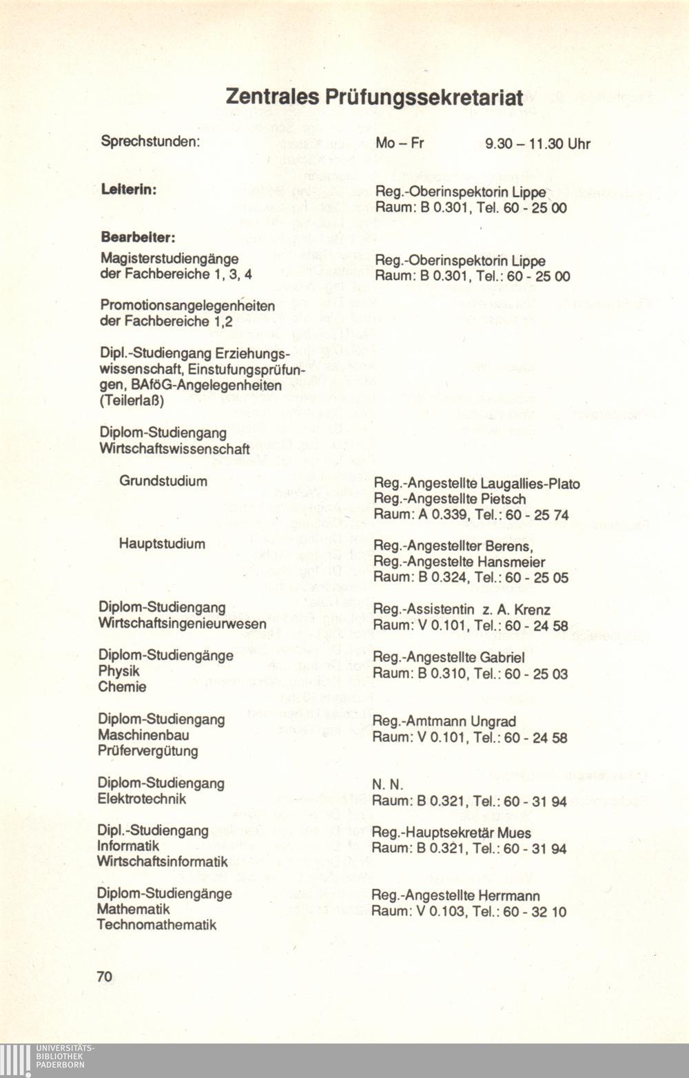 Personal- und Vorlesungsverzeichnis für die Universität Paderborn