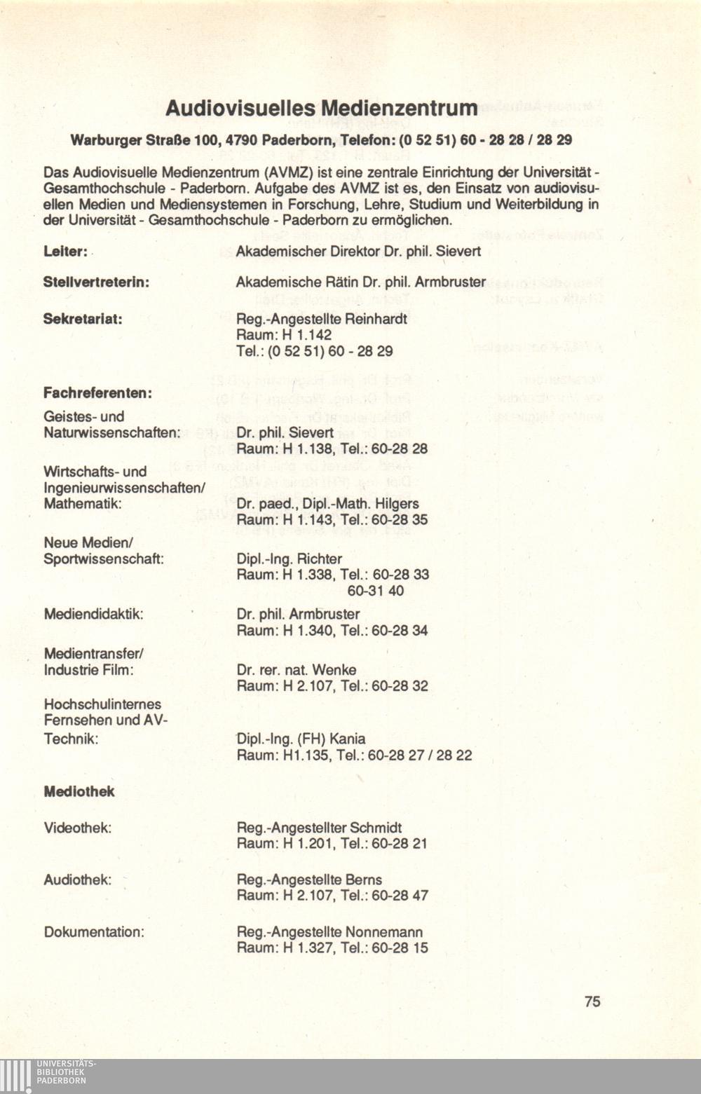 Personal- und Vorlesungsverzeichnis für die Universität Paderborn