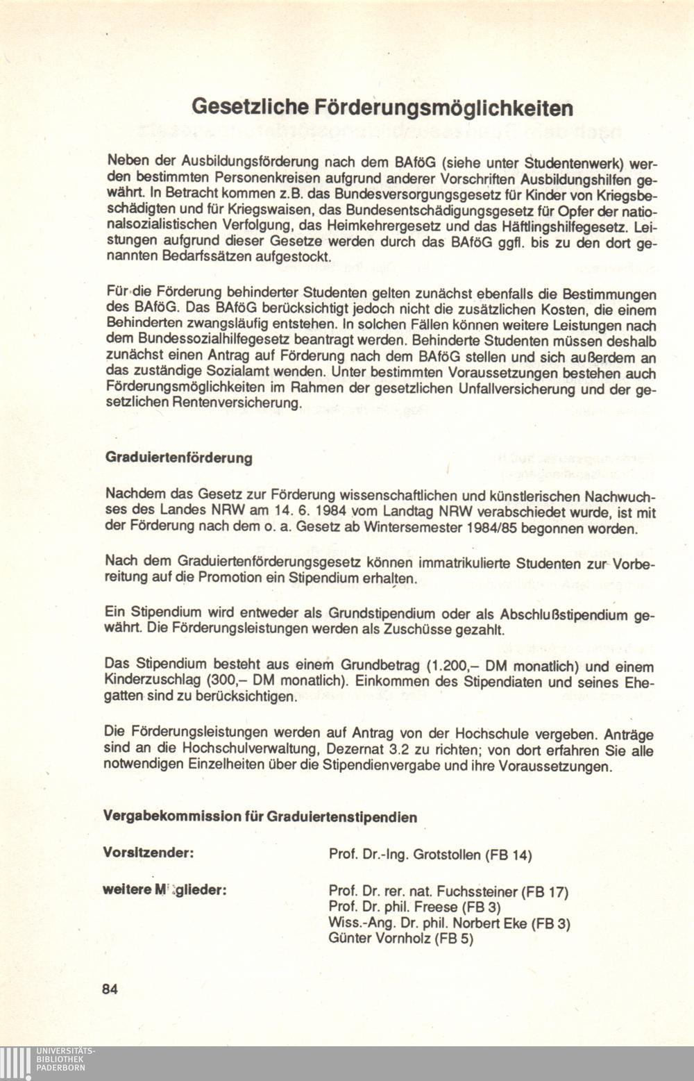 Personal- und Vorlesungsverzeichnis für die Universität Paderborn