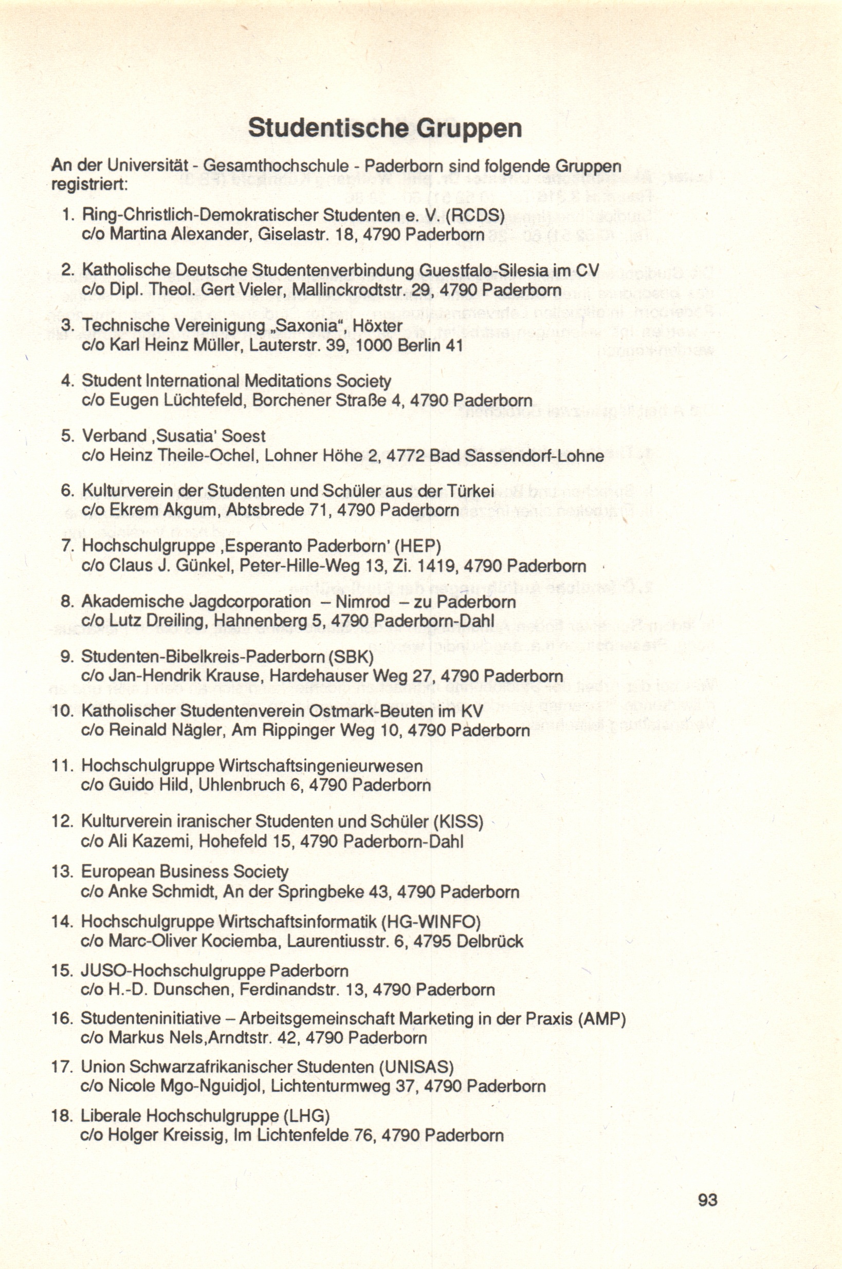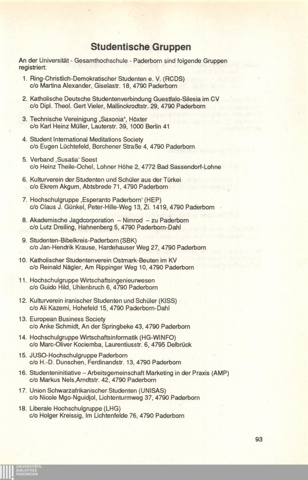 Personal- und Vorlesungsverzeichnis für die Universität Paderborn