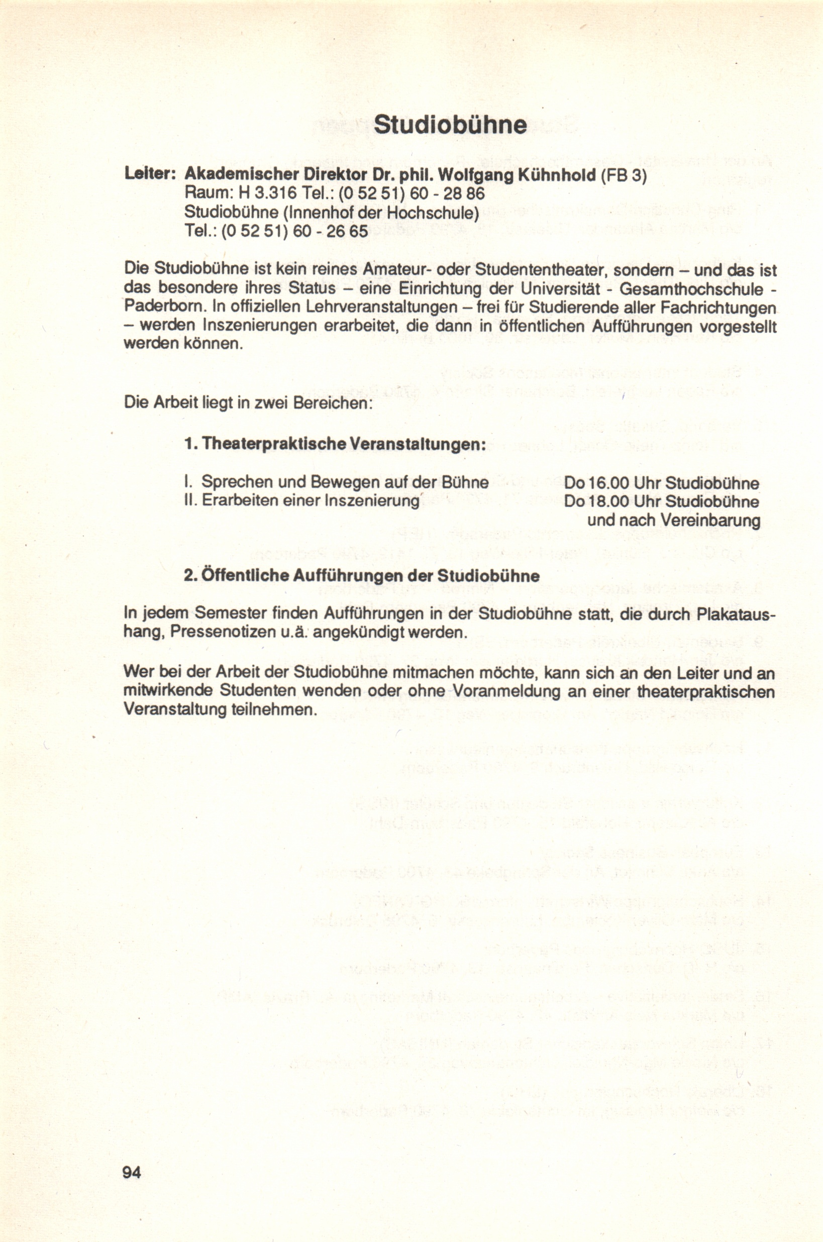Personal- und Vorlesungsverzeichnis für die Universität Paderborn
