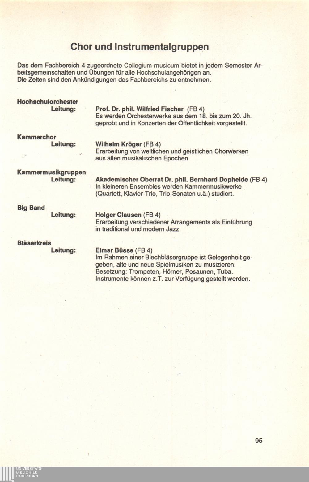Personal- und Vorlesungsverzeichnis für die Universität Paderborn