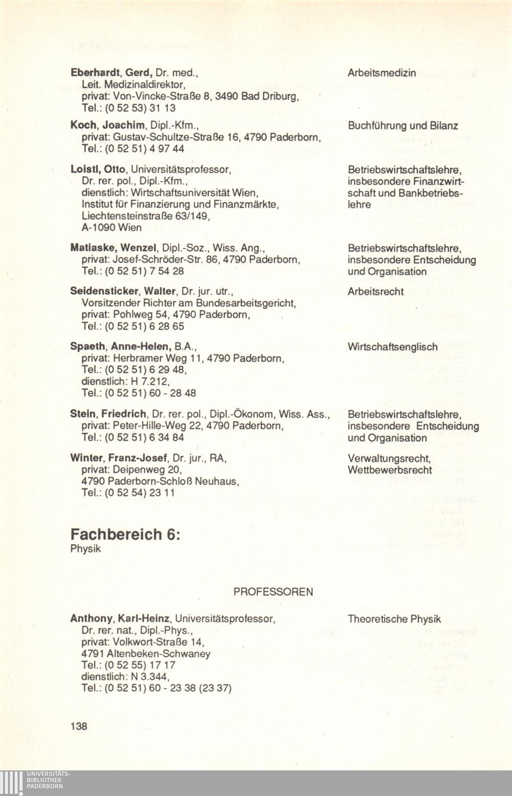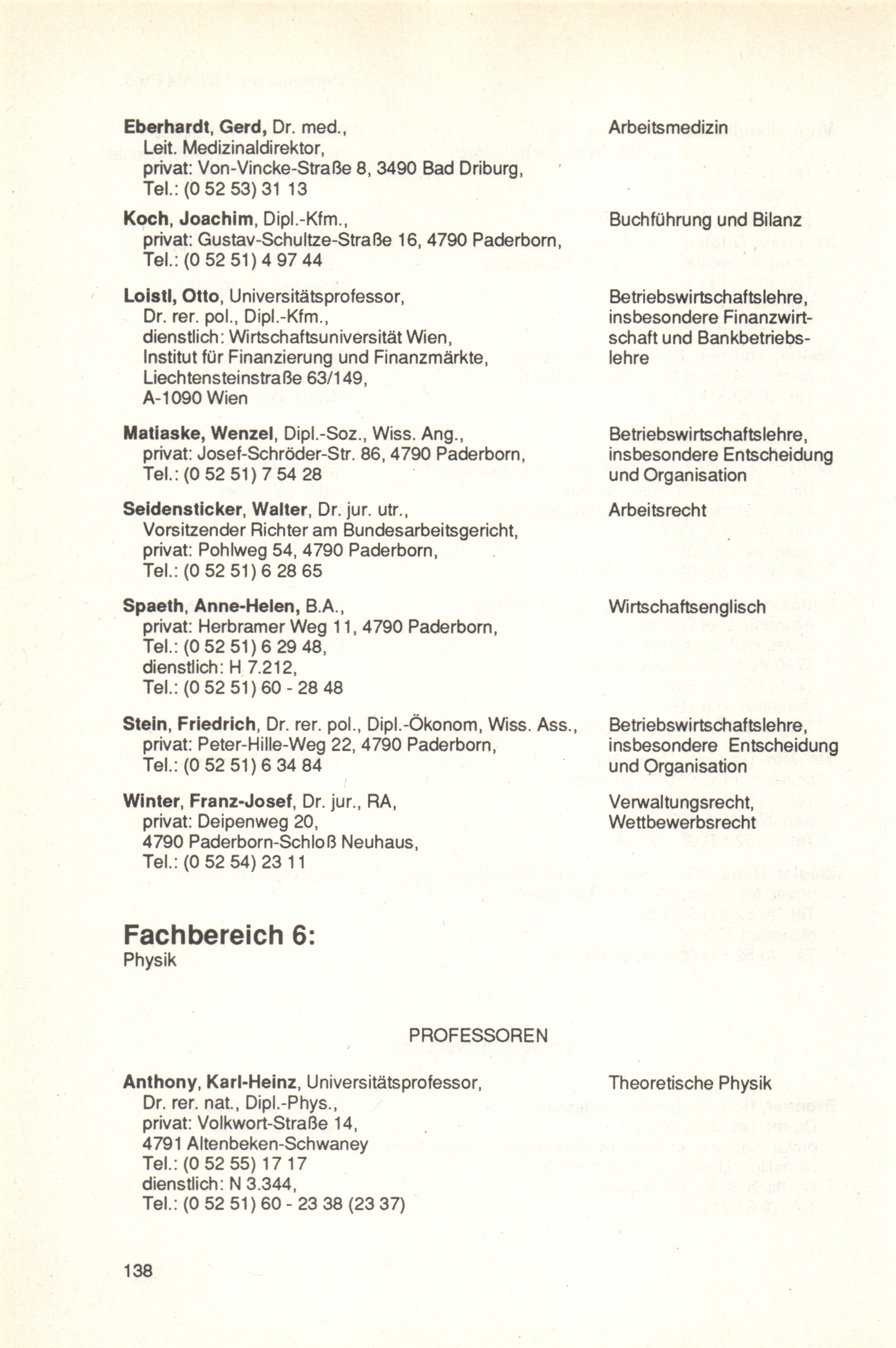 Personal- und Vorlesungsverzeichnis für die Universität Paderborn