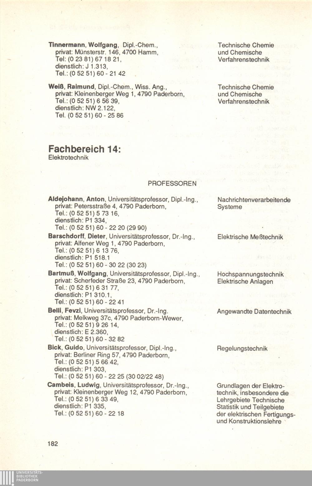 Personal- und Vorlesungsverzeichnis für die Universität Paderborn