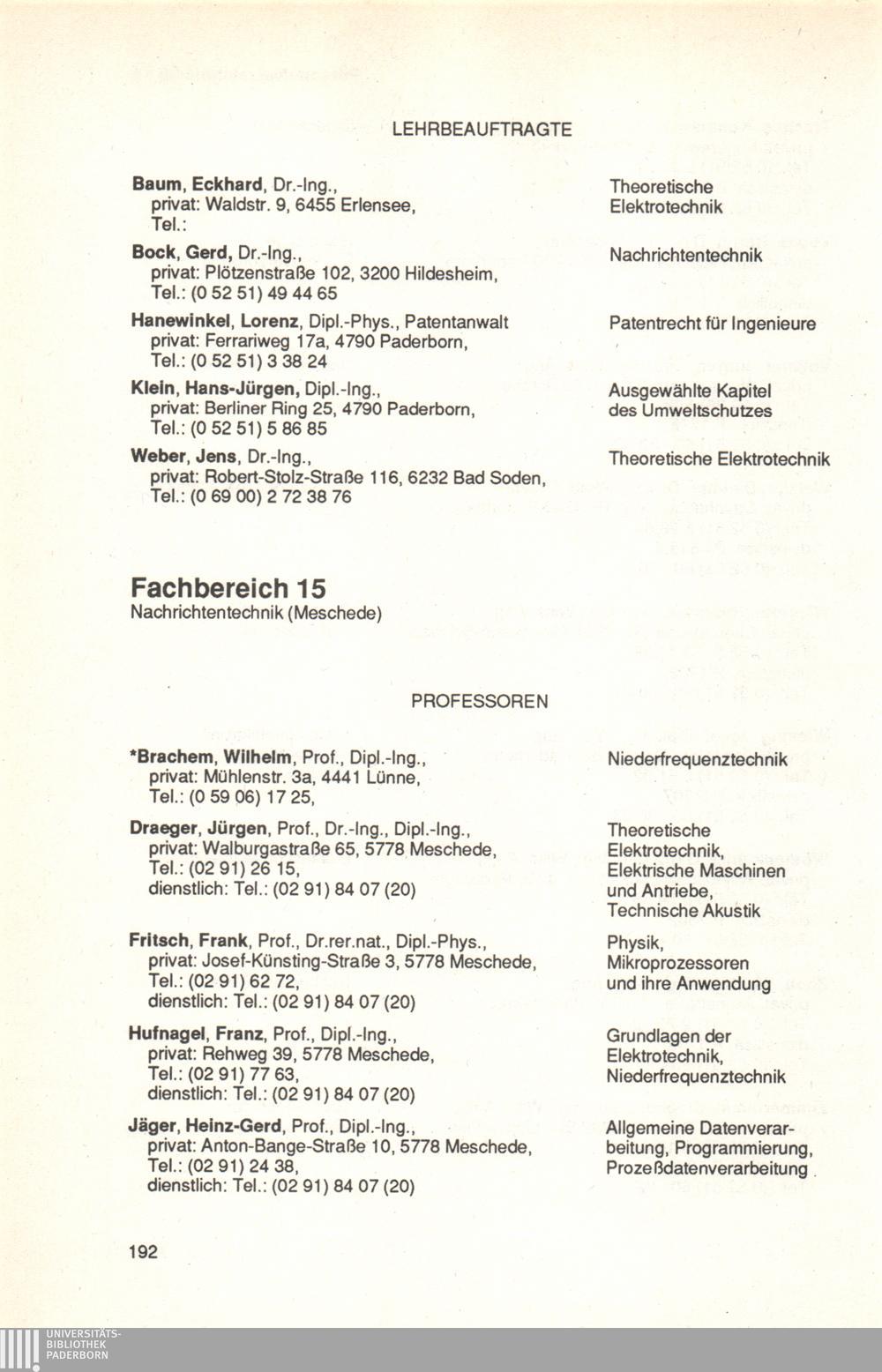 Personal- und Vorlesungsverzeichnis für die Universität Paderborn