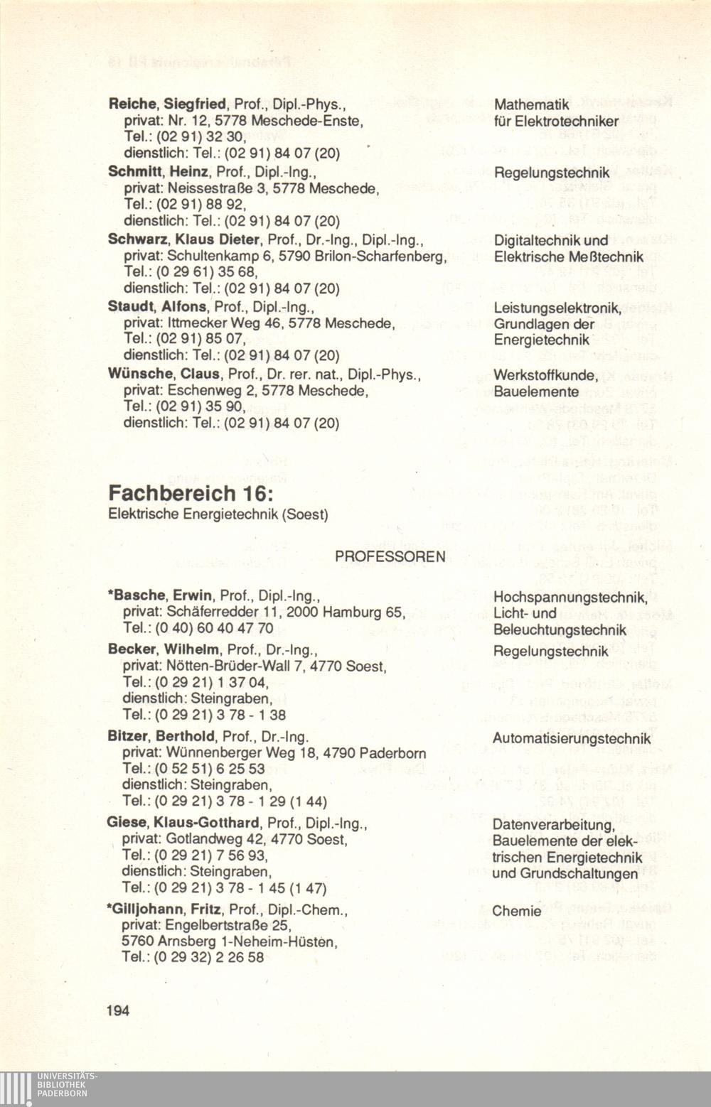 Personal- und Vorlesungsverzeichnis für die Universität Paderborn