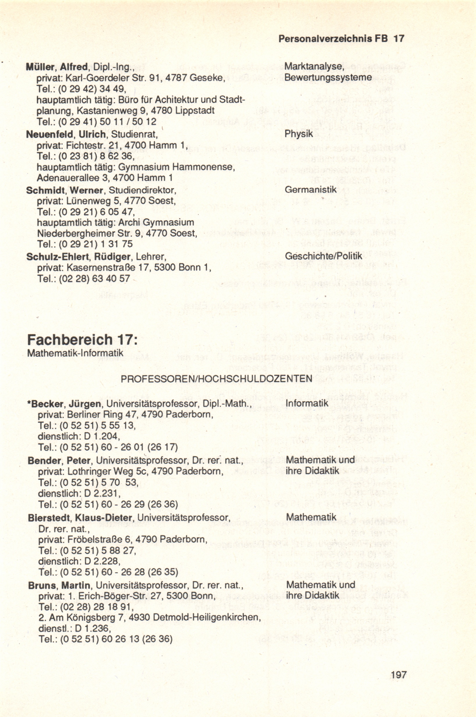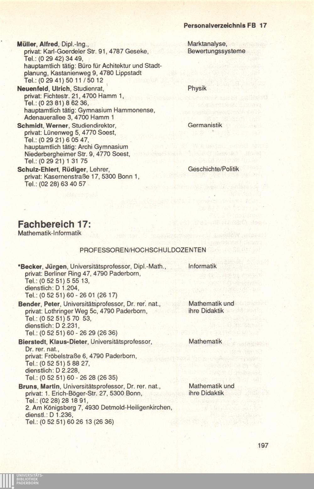 Personal- und Vorlesungsverzeichnis für die Universität Paderborn