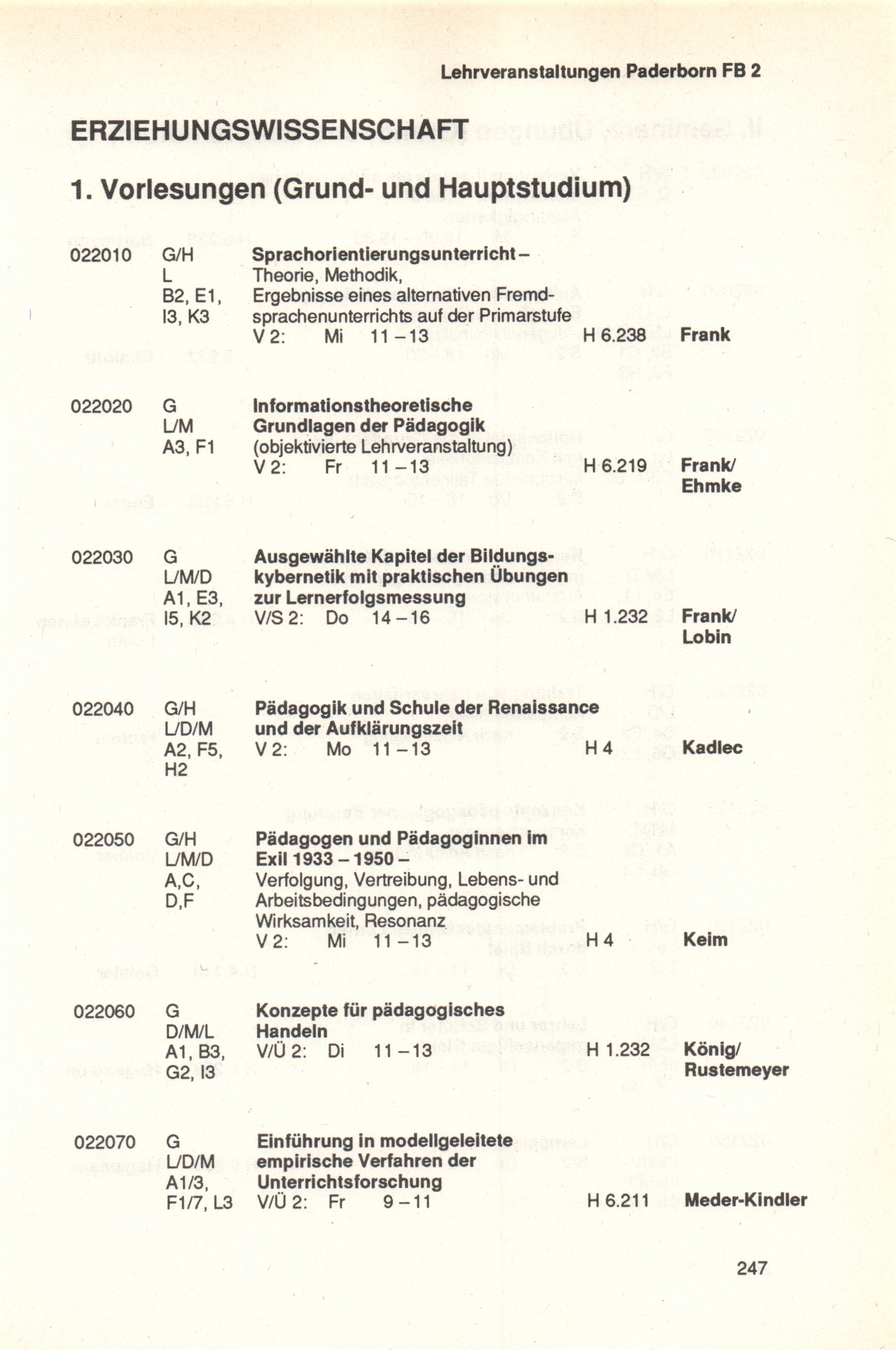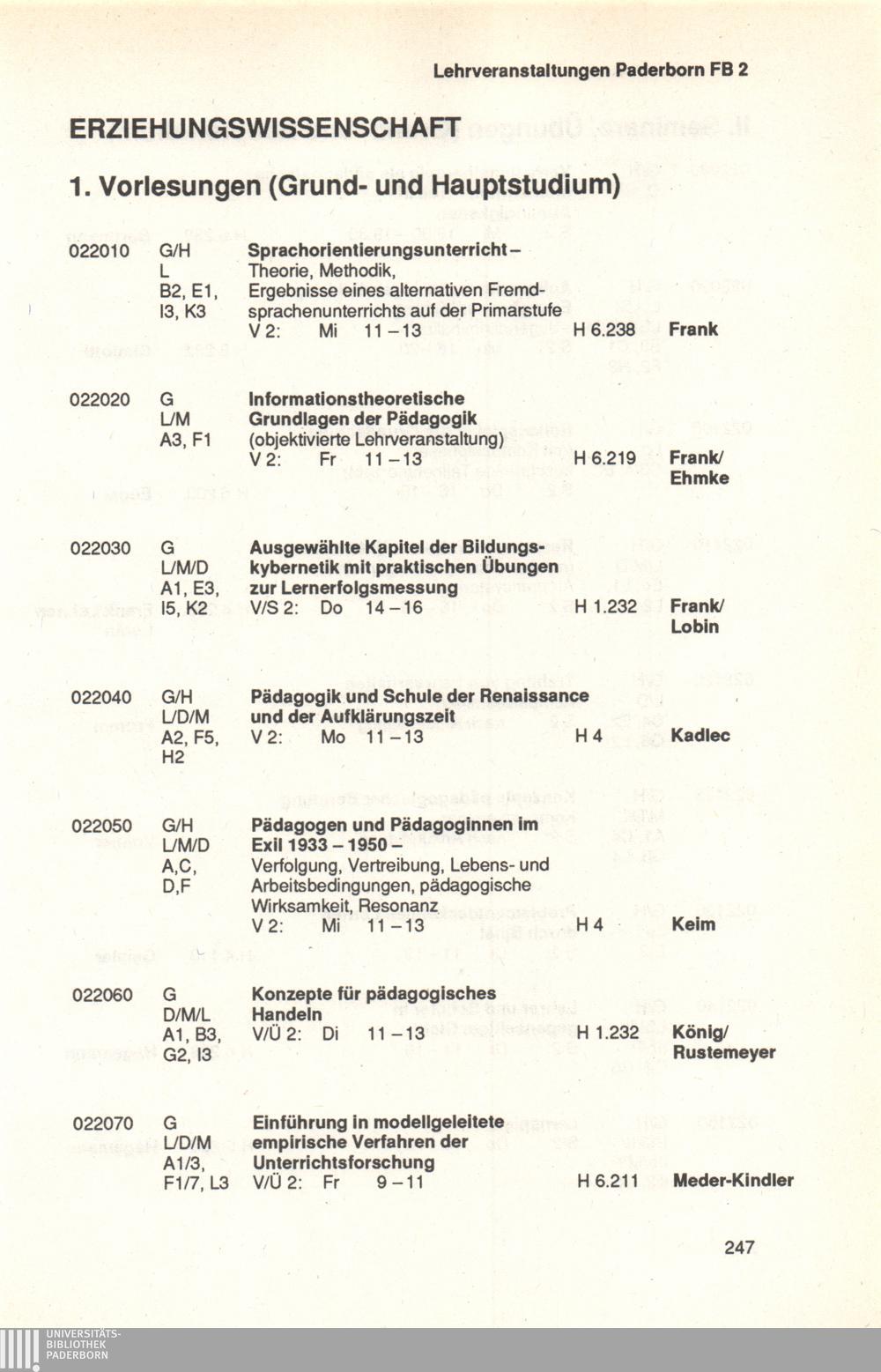 Personal- und Vorlesungsverzeichnis für die Universität Paderborn