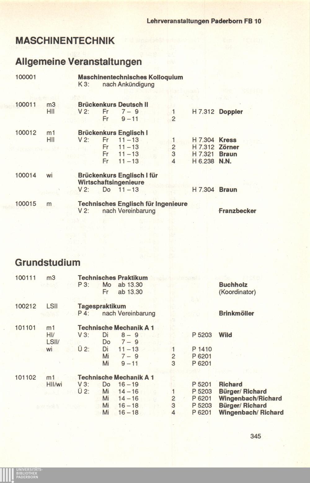 Personal- und Vorlesungsverzeichnis für die Universität Paderborn