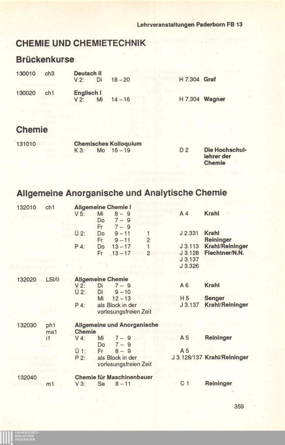 Personal- und Vorlesungsverzeichnis für die Universität Paderborn
