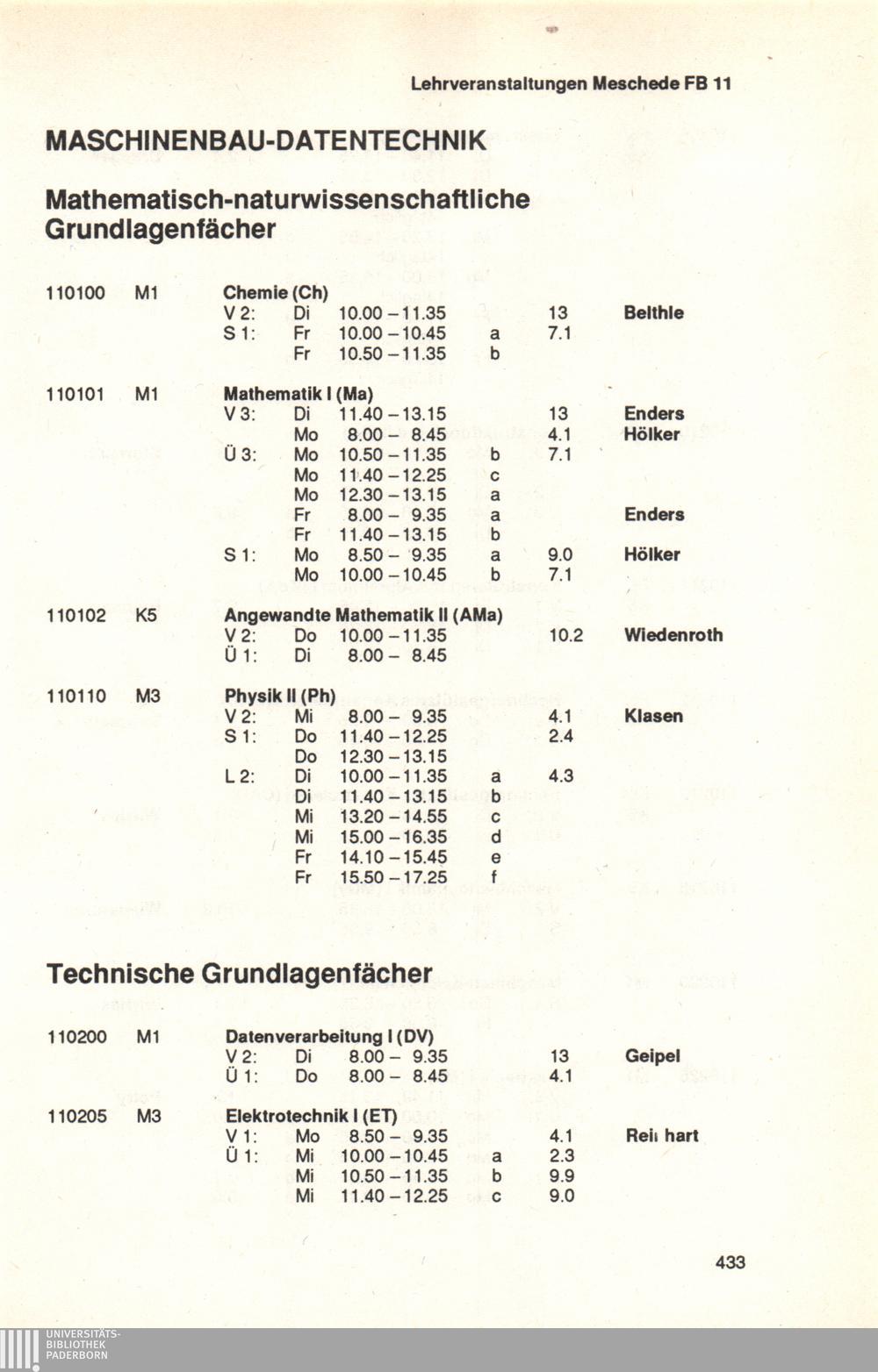 Personal- und Vorlesungsverzeichnis für die Universität Paderborn