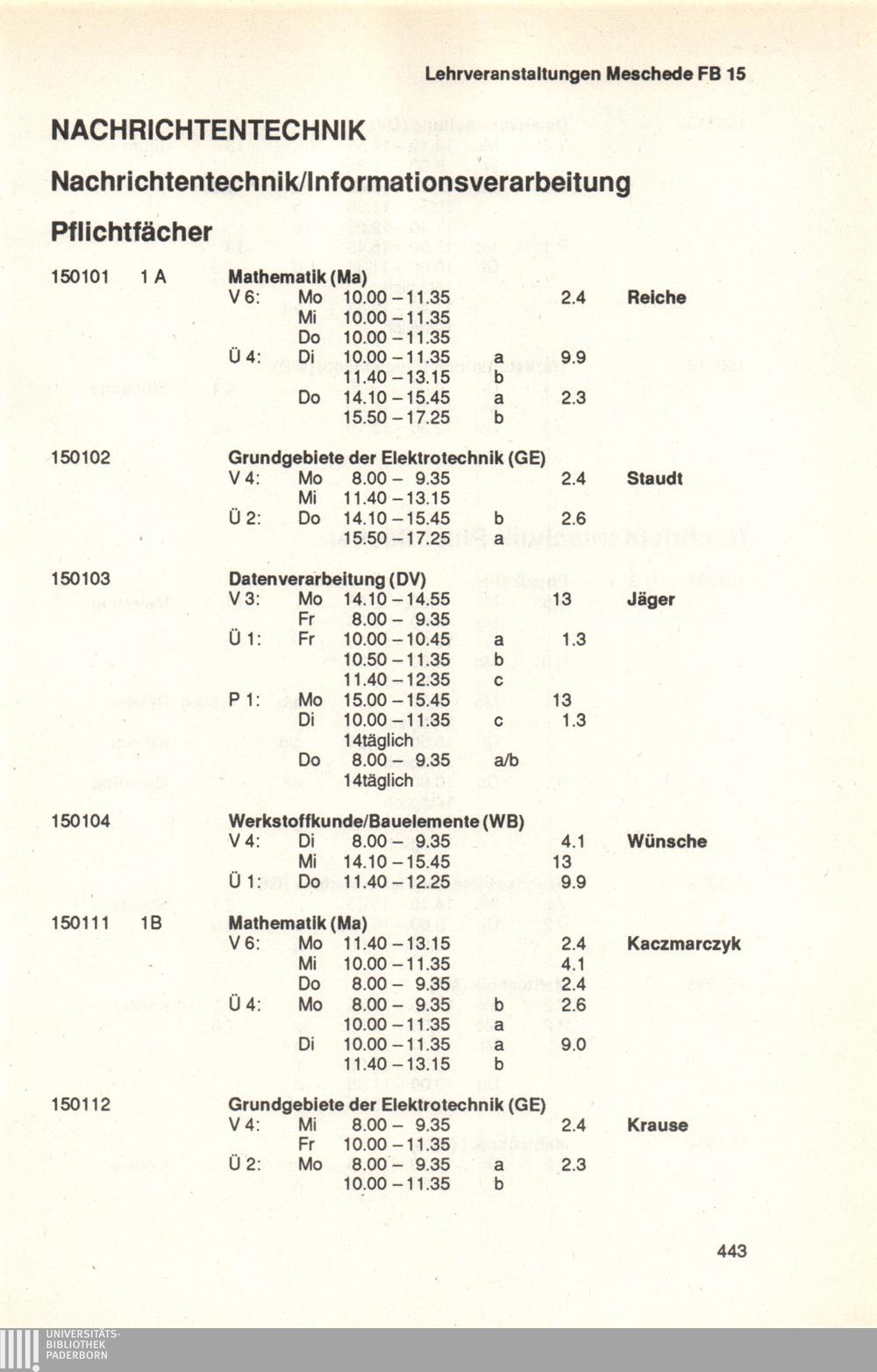 Personal- und Vorlesungsverzeichnis für die Universität Paderborn