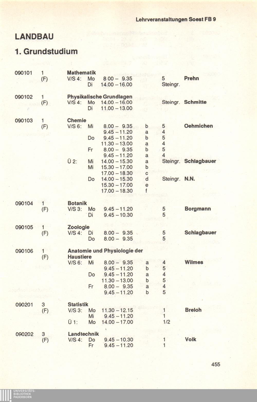 Personal- und Vorlesungsverzeichnis für die Universität Paderborn
