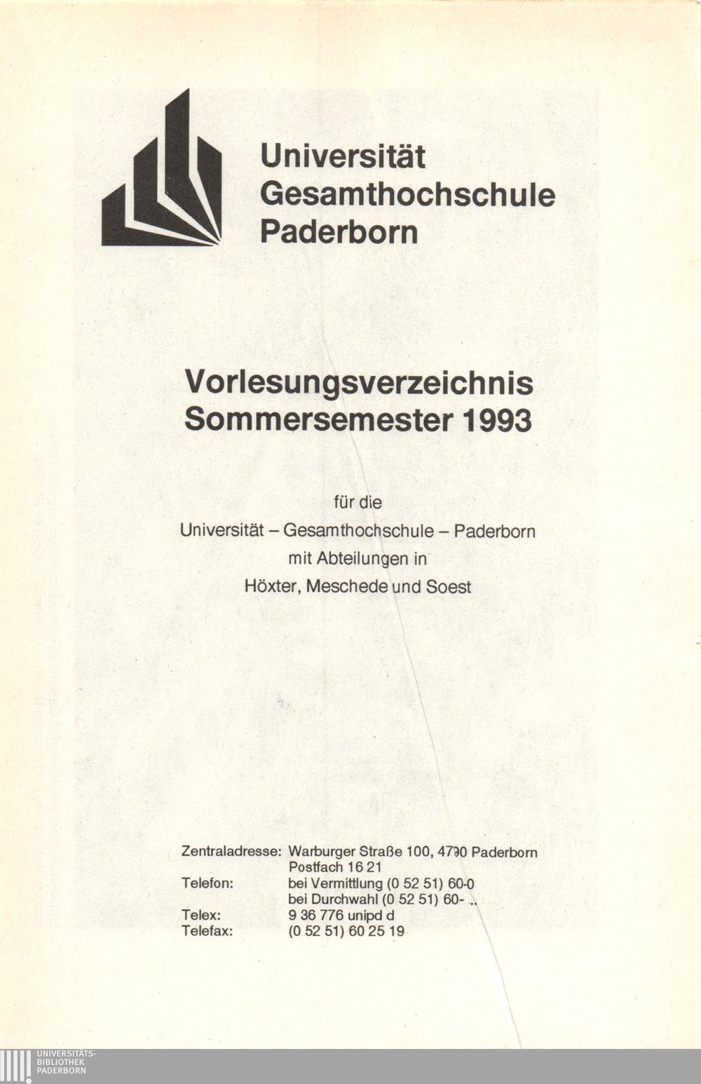 Personal- und Vorlesungsverzeichnis für die Universität Paderborn