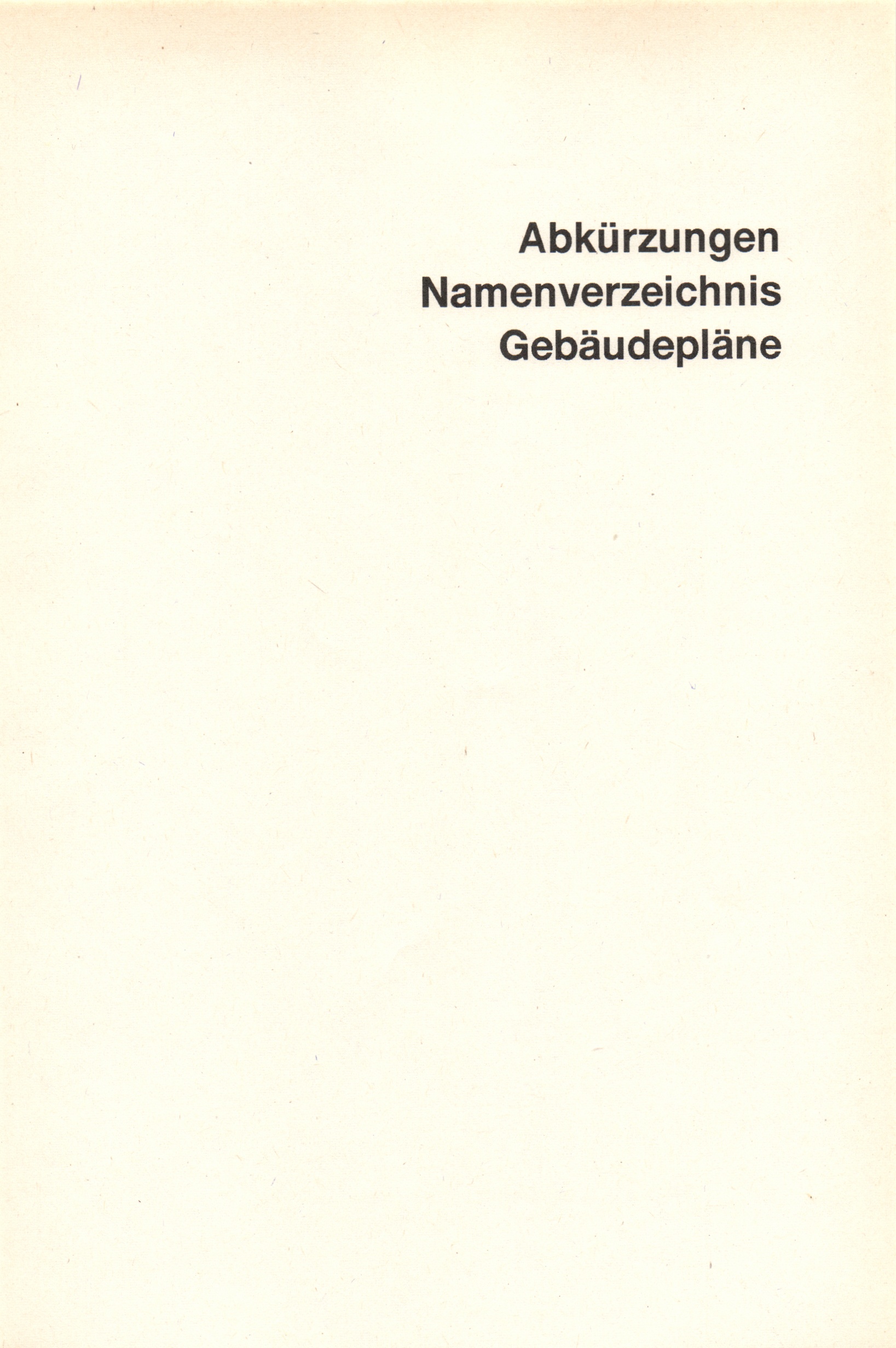 Abkürzungen, Namenverzeichnis, Lagepläne