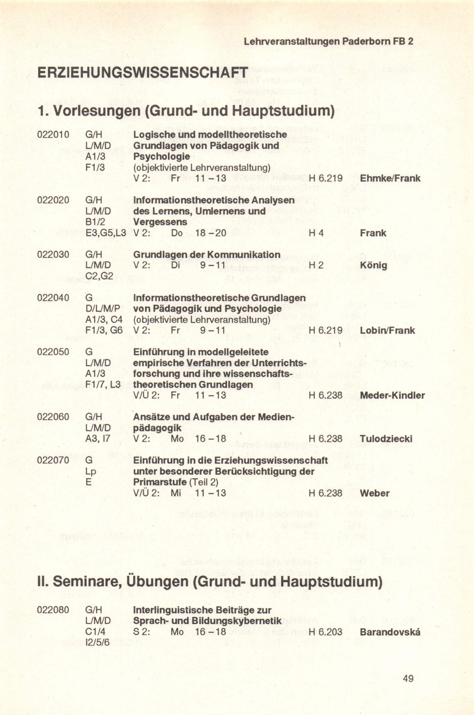 Personal- und Vorlesungsverzeichnis für die Universität Paderborn
