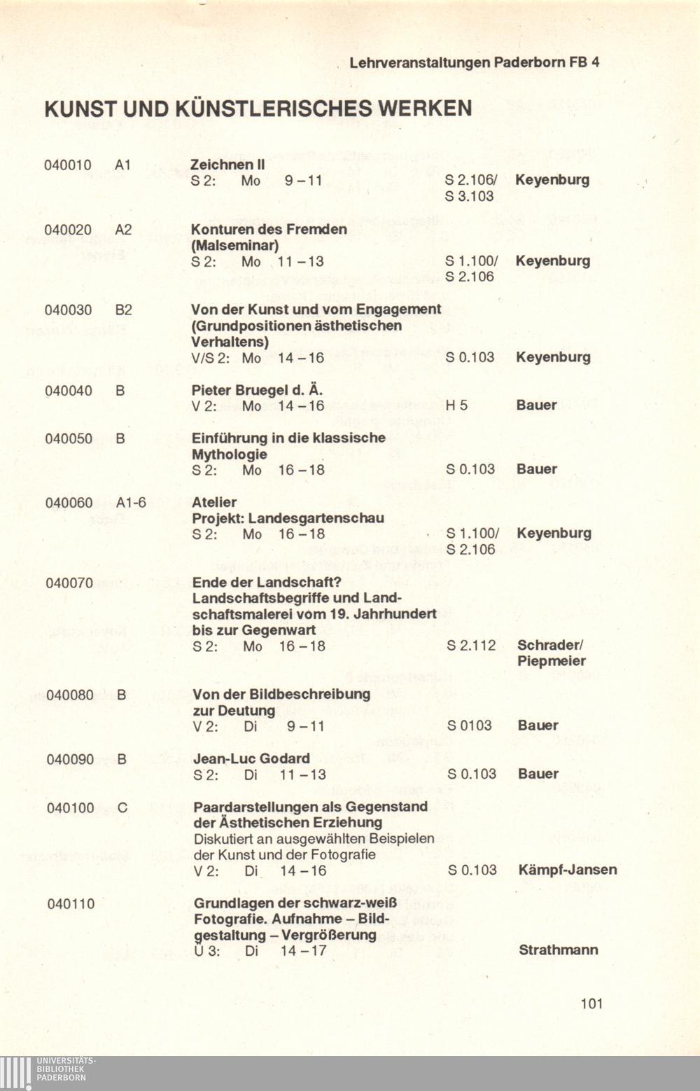 Personal- und Vorlesungsverzeichnis für die Universität Paderborn
