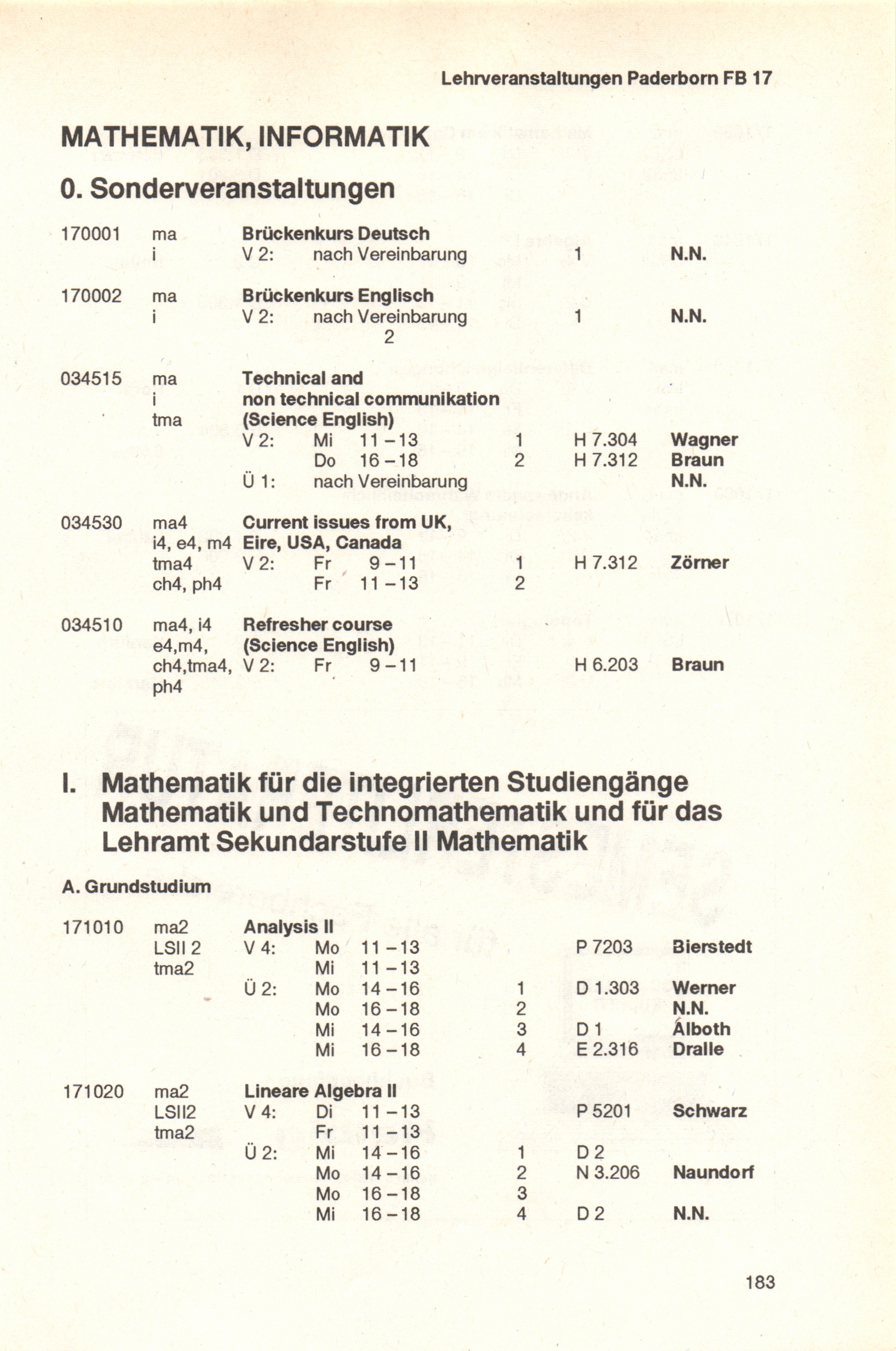Personal- und Vorlesungsverzeichnis für die Universität Paderborn