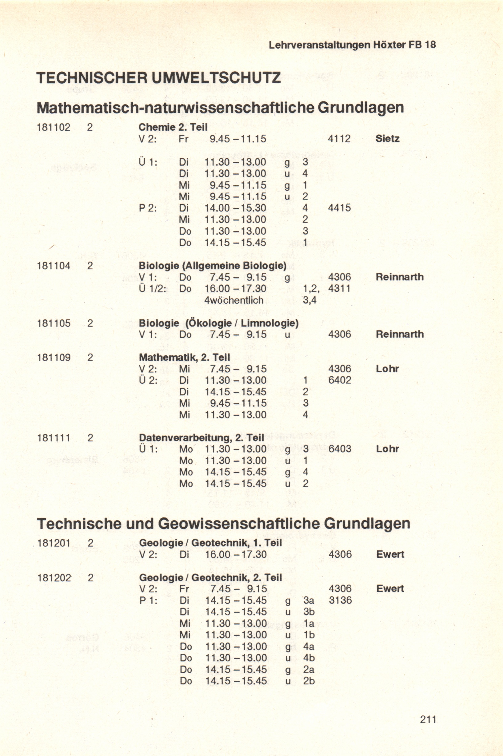 Fachbereich 18: Technischer Umweltschutz