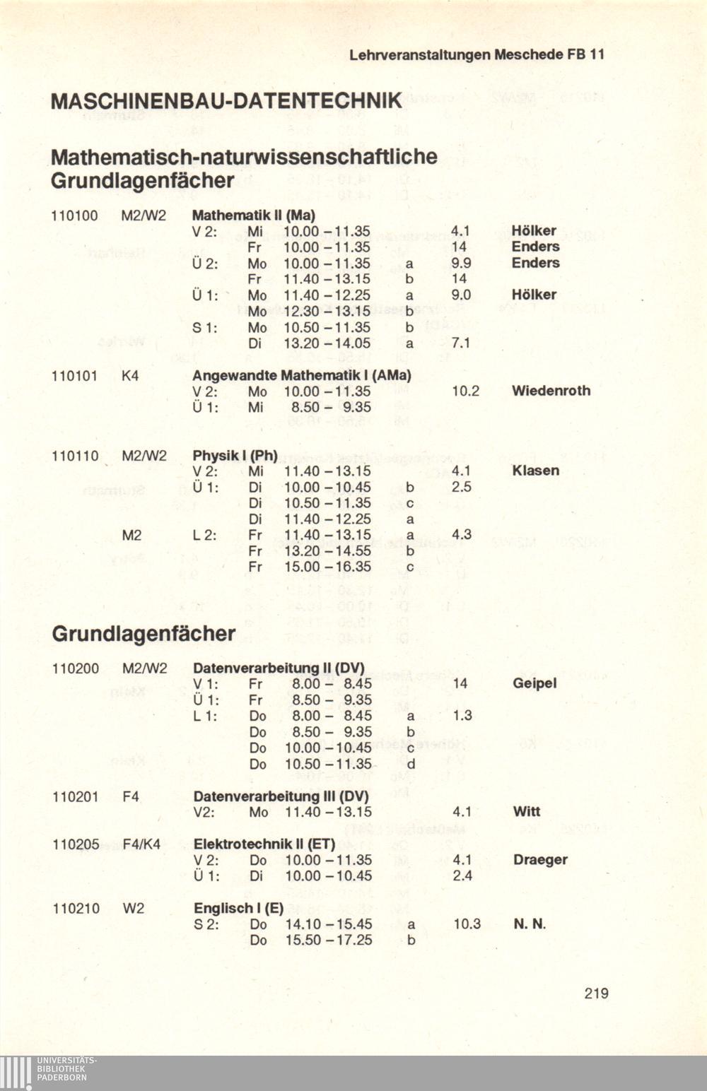Personal- und Vorlesungsverzeichnis für die Universität Paderborn