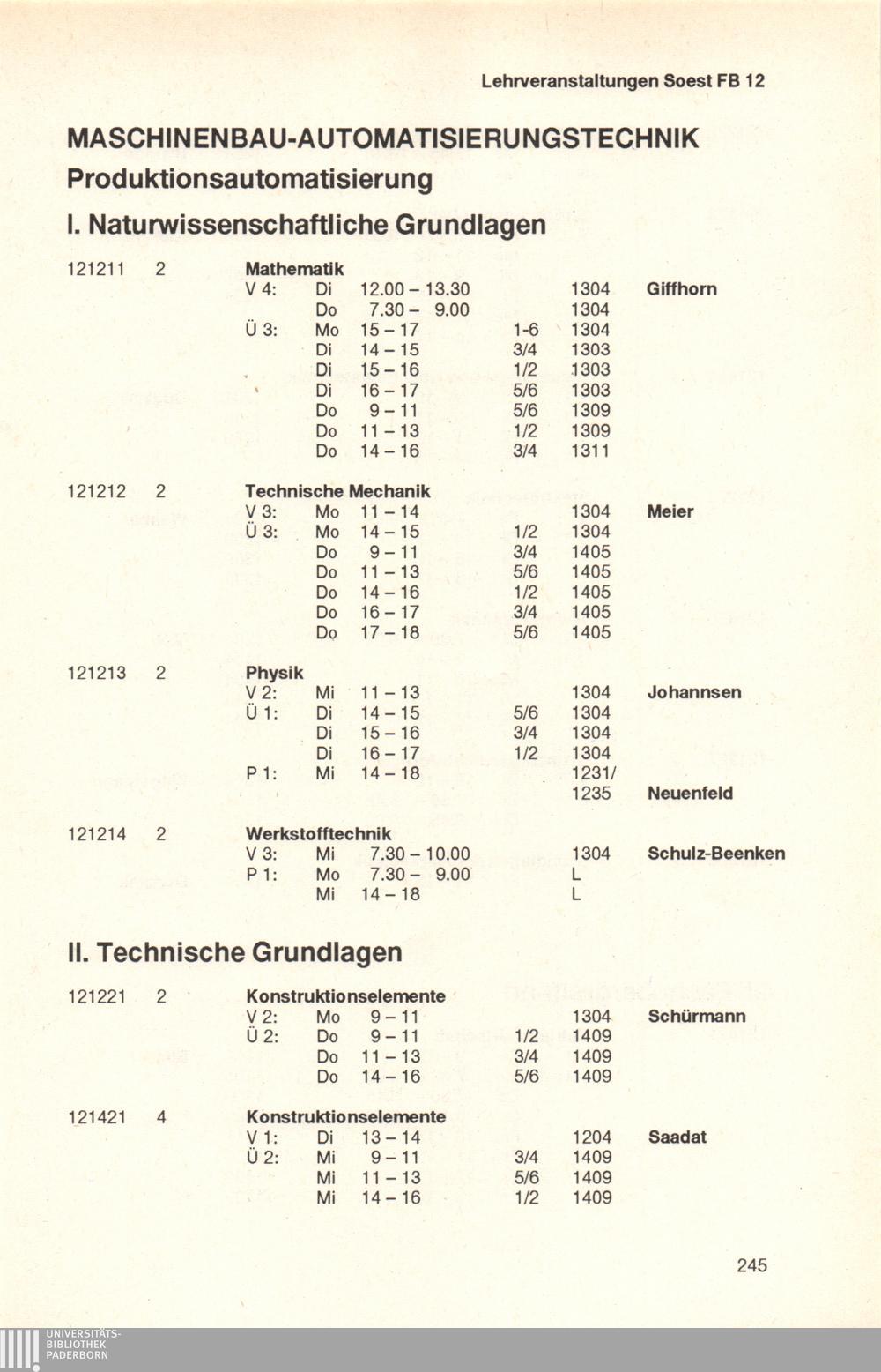 Personal- und Vorlesungsverzeichnis für die Universität Paderborn