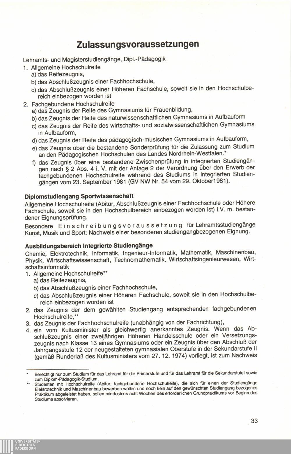 Personal- und Vorlesungsverzeichnis für die Universität Paderborn