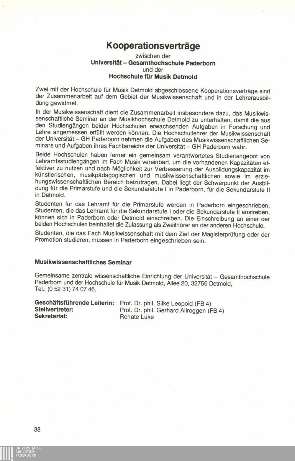 Kooperationsverträge zwischen der Universität-Gesamthochschule Paderborn und der[...]
