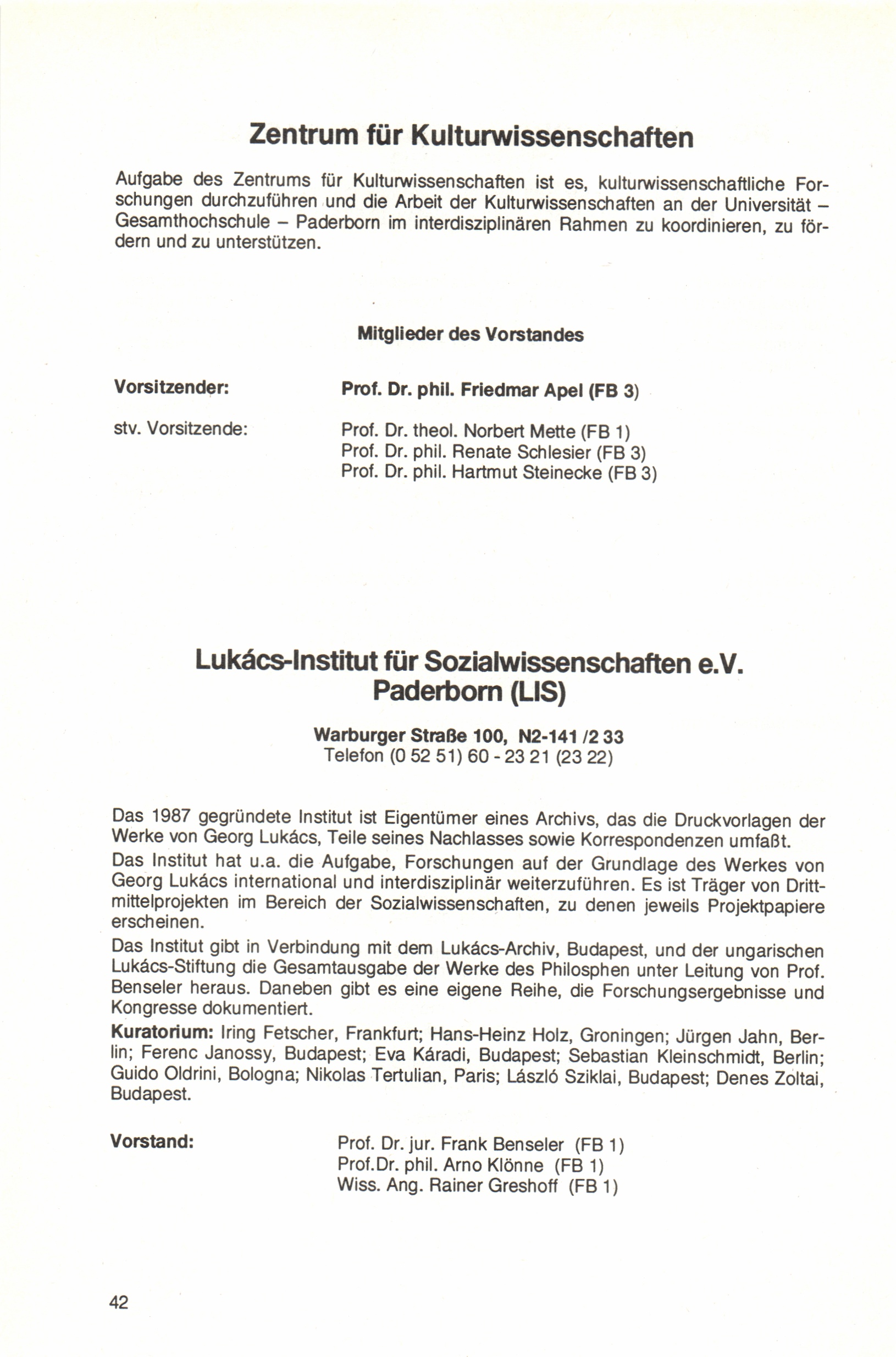 Zentrum für Kulturwissenschaften / Lukács-Institut