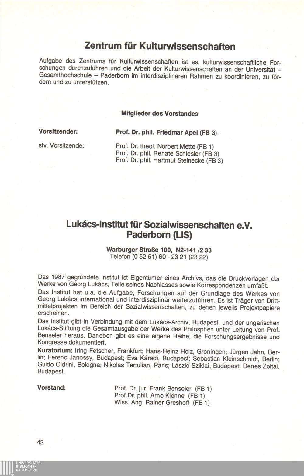 Personal- und Vorlesungsverzeichnis für die Universität Paderborn