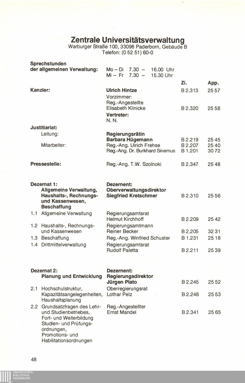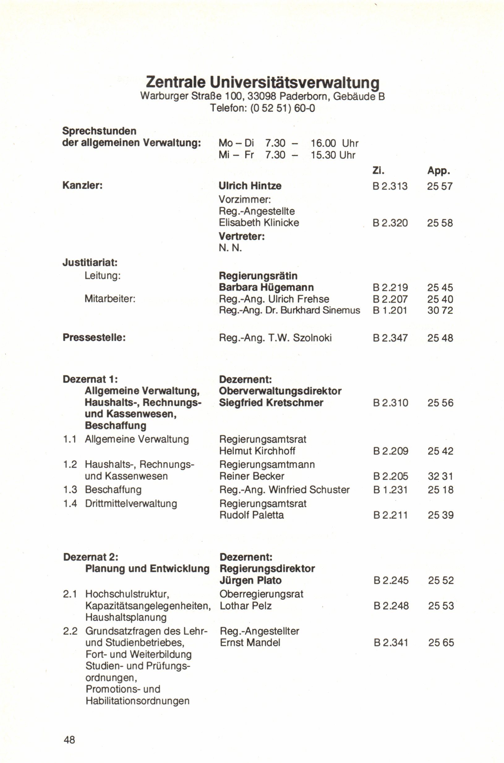 Personal- und Vorlesungsverzeichnis für die Universität Paderborn