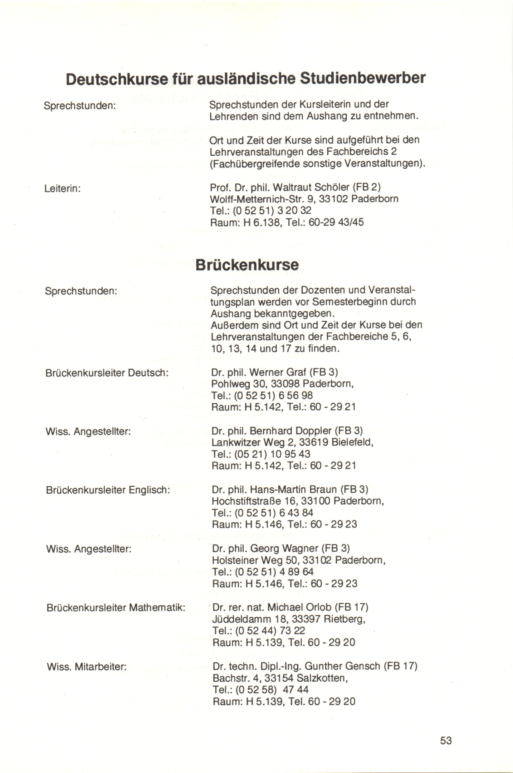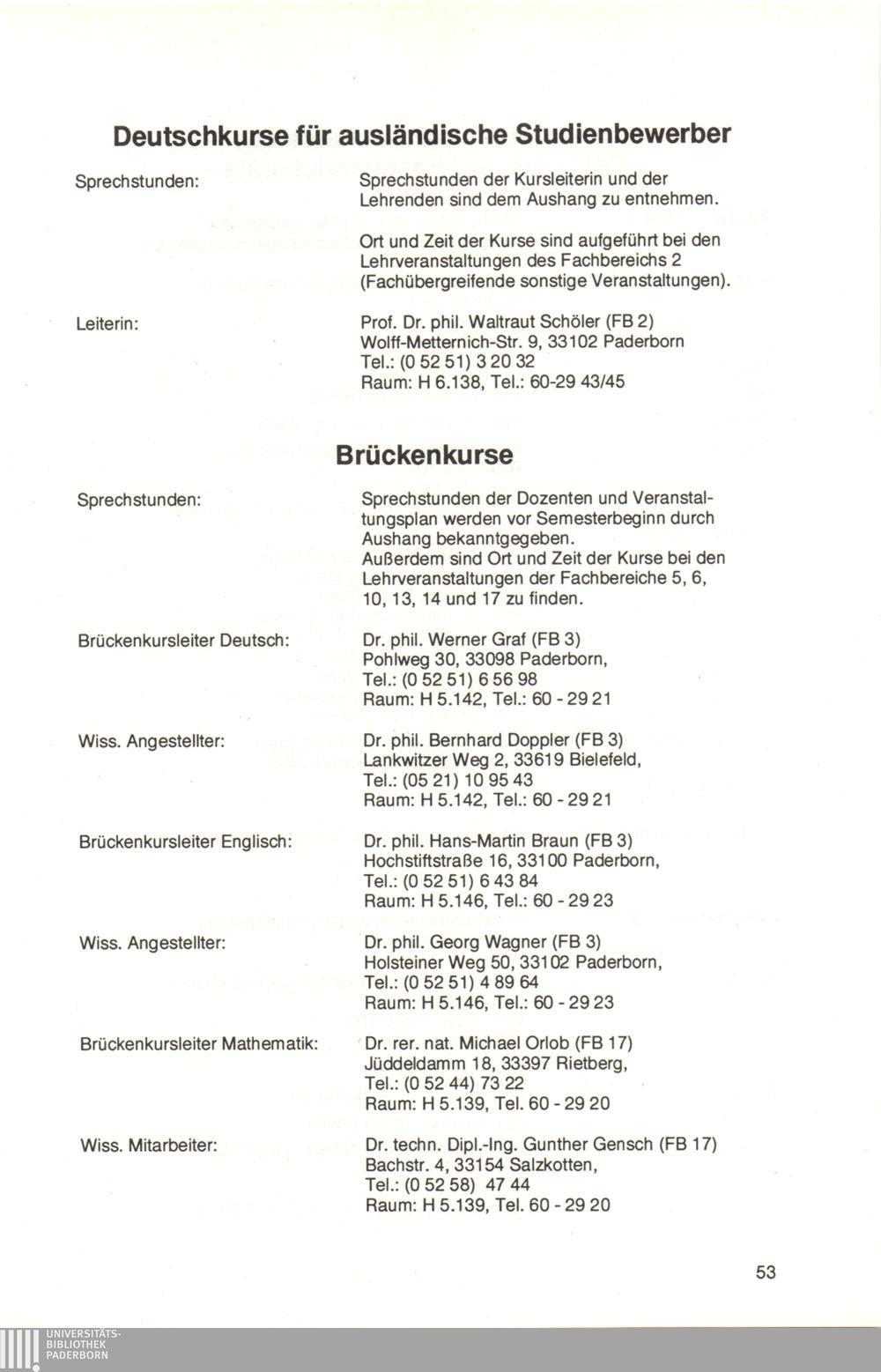 Personal- und Vorlesungsverzeichnis für die Universität Paderborn