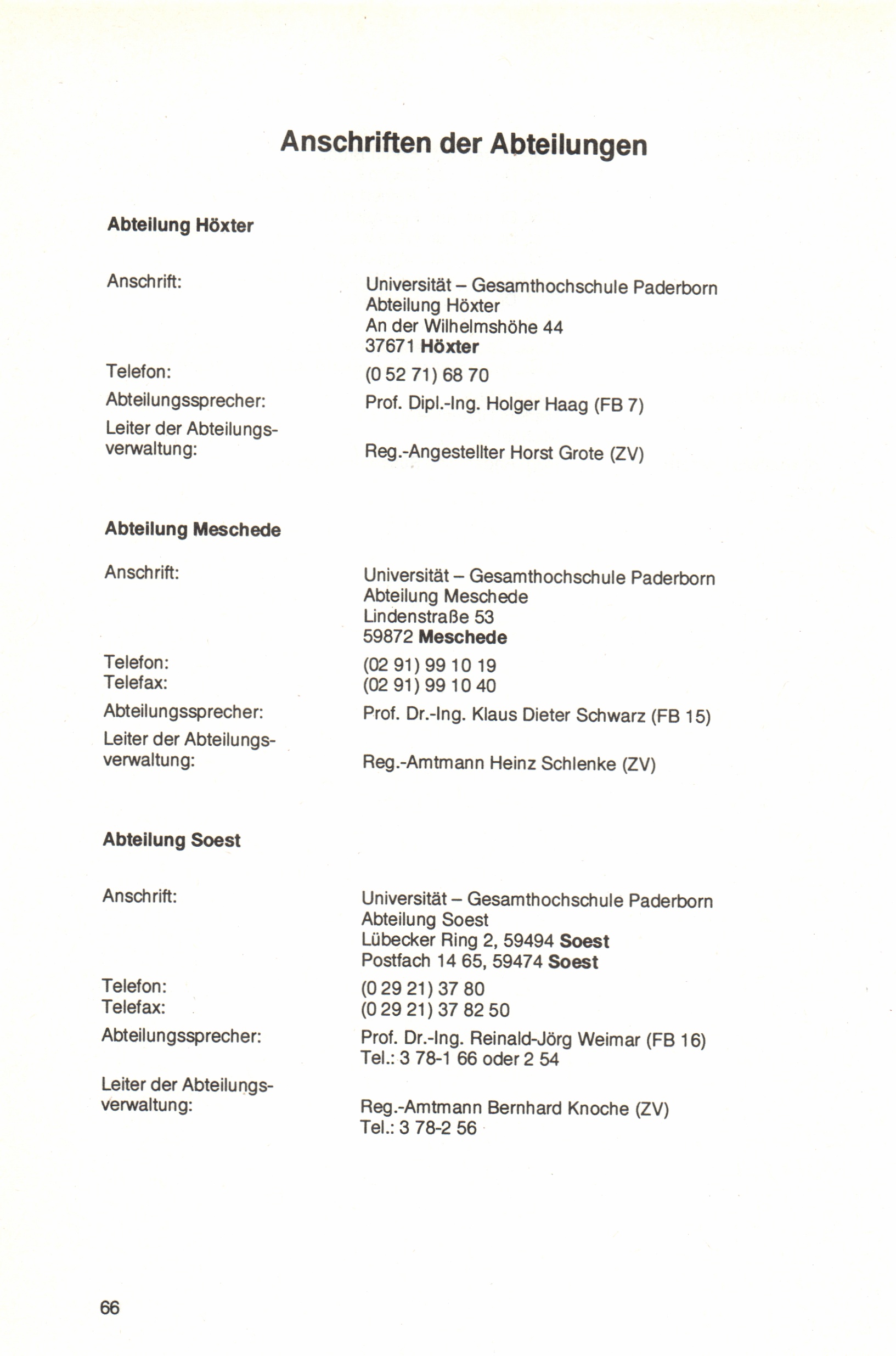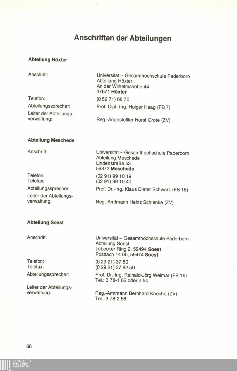 Anschriften der Abteilungen