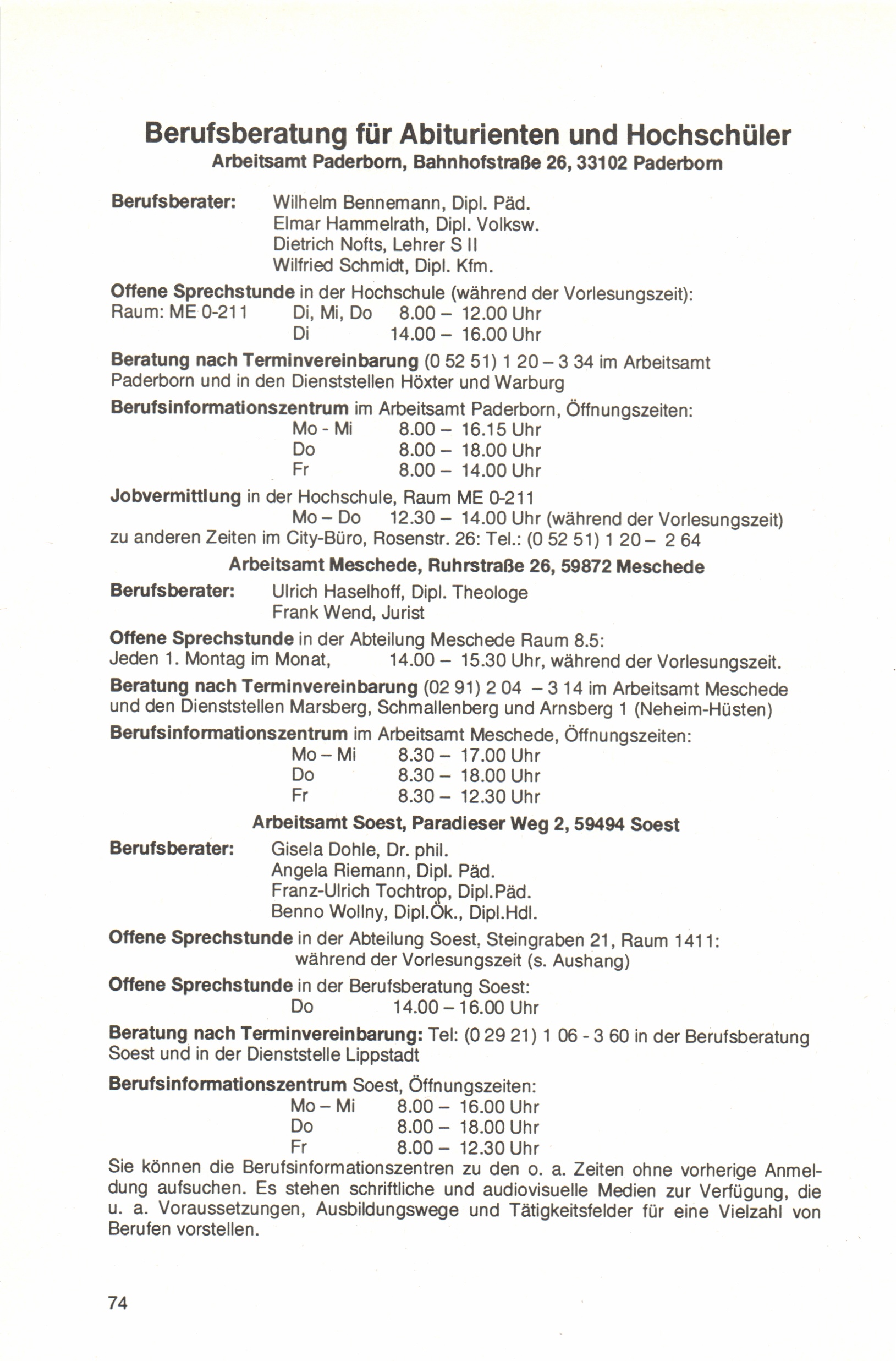 Berufsberatung der Arbeitsämter