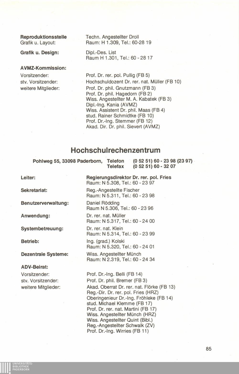 Personal- und Vorlesungsverzeichnis für die Universität Paderborn