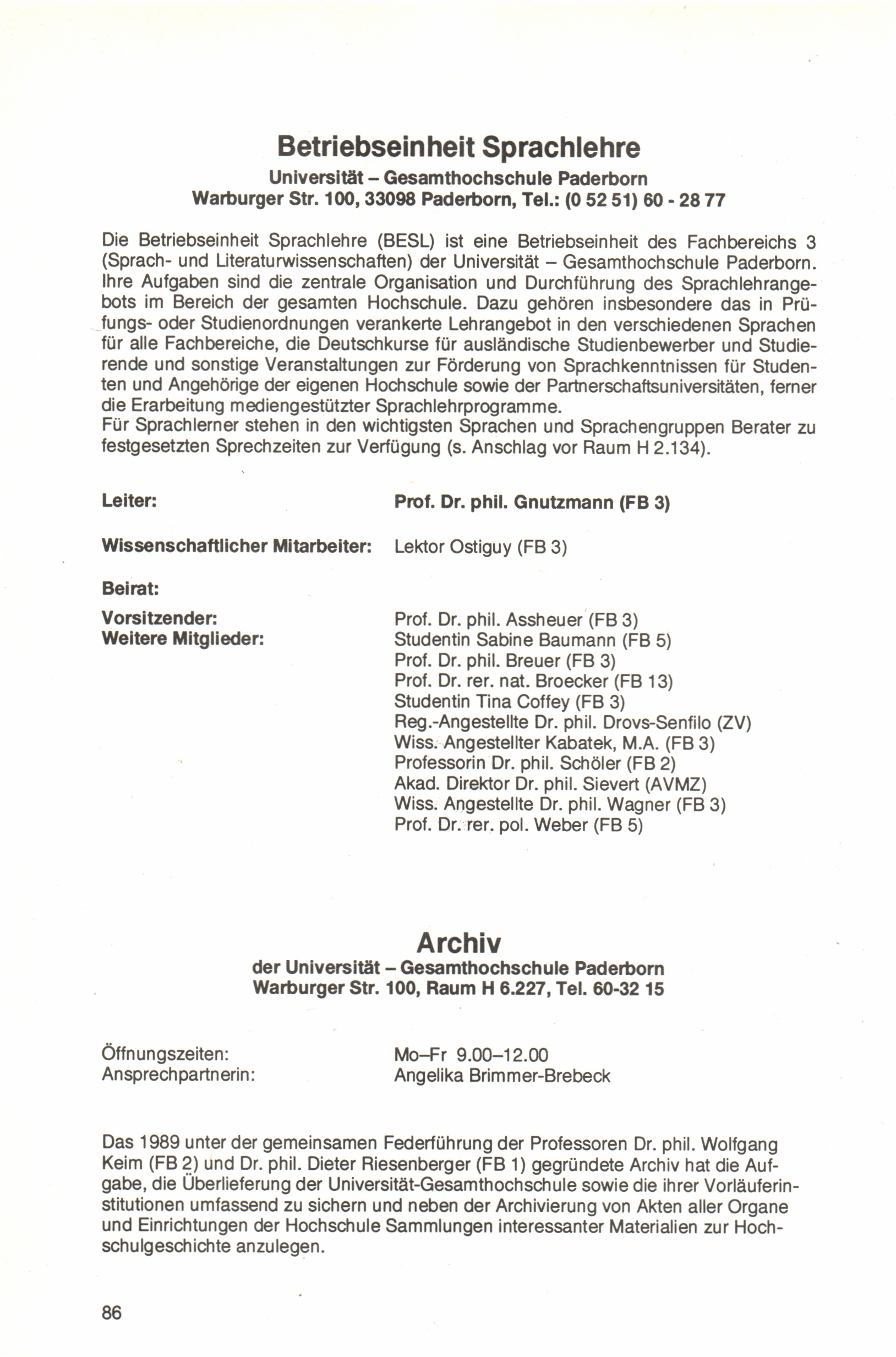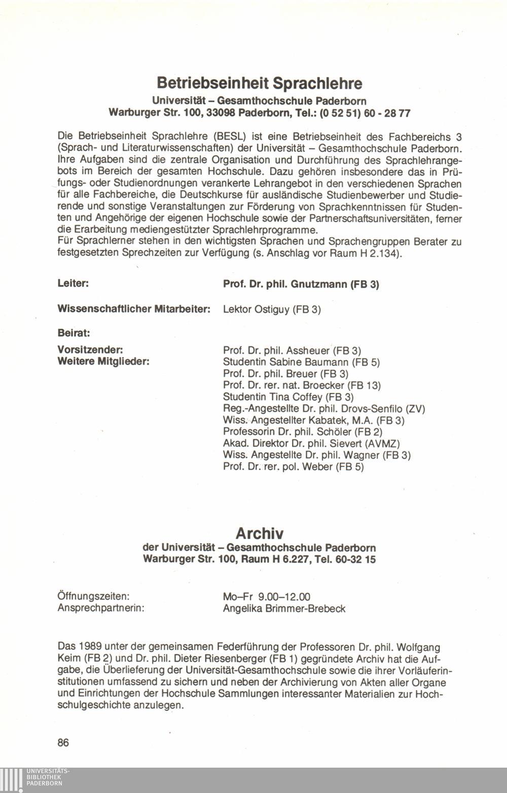 Personal- und Vorlesungsverzeichnis für die Universität Paderborn