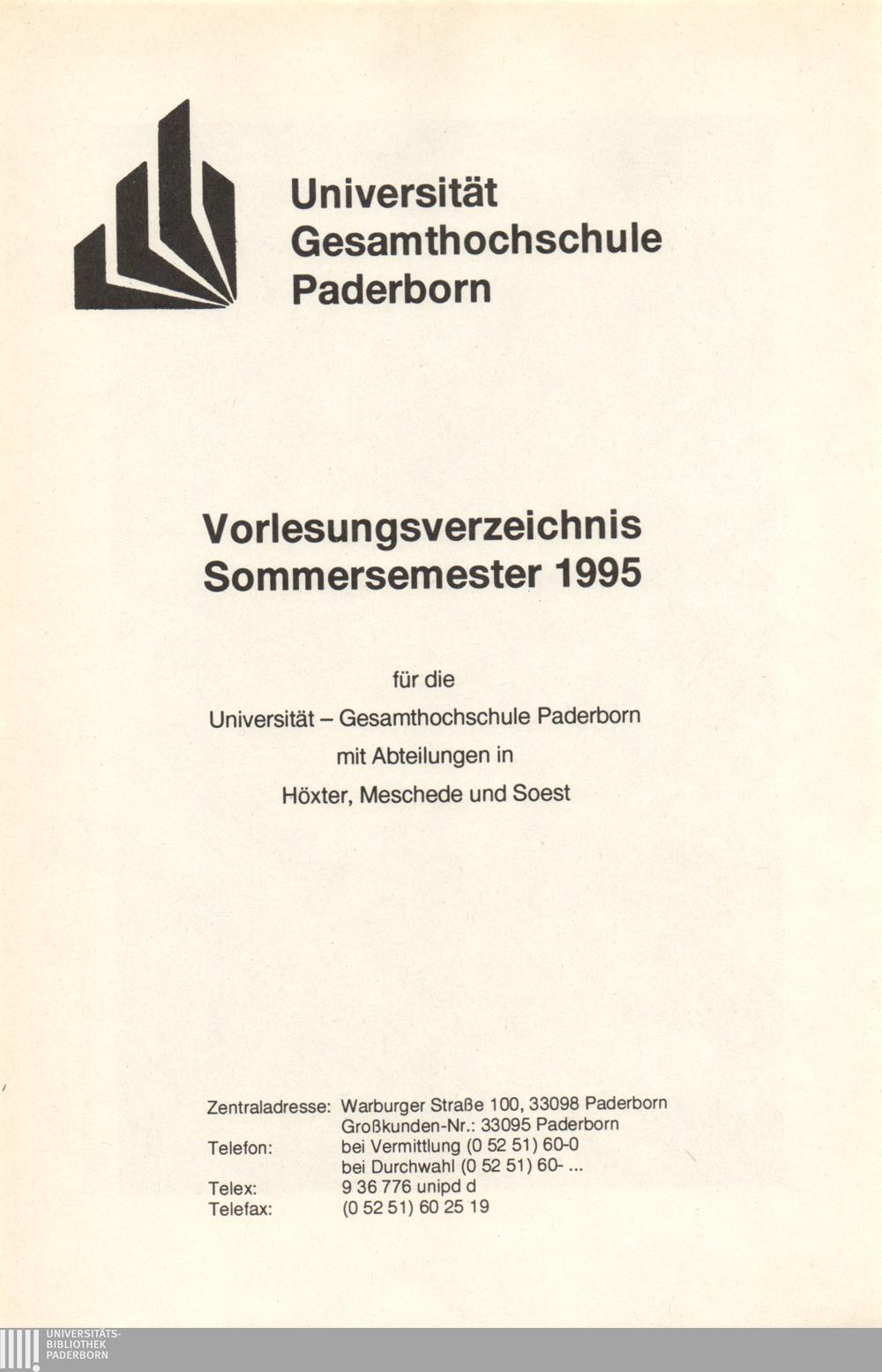 Personal- und Vorlesungsverzeichnis für die Universität Paderborn