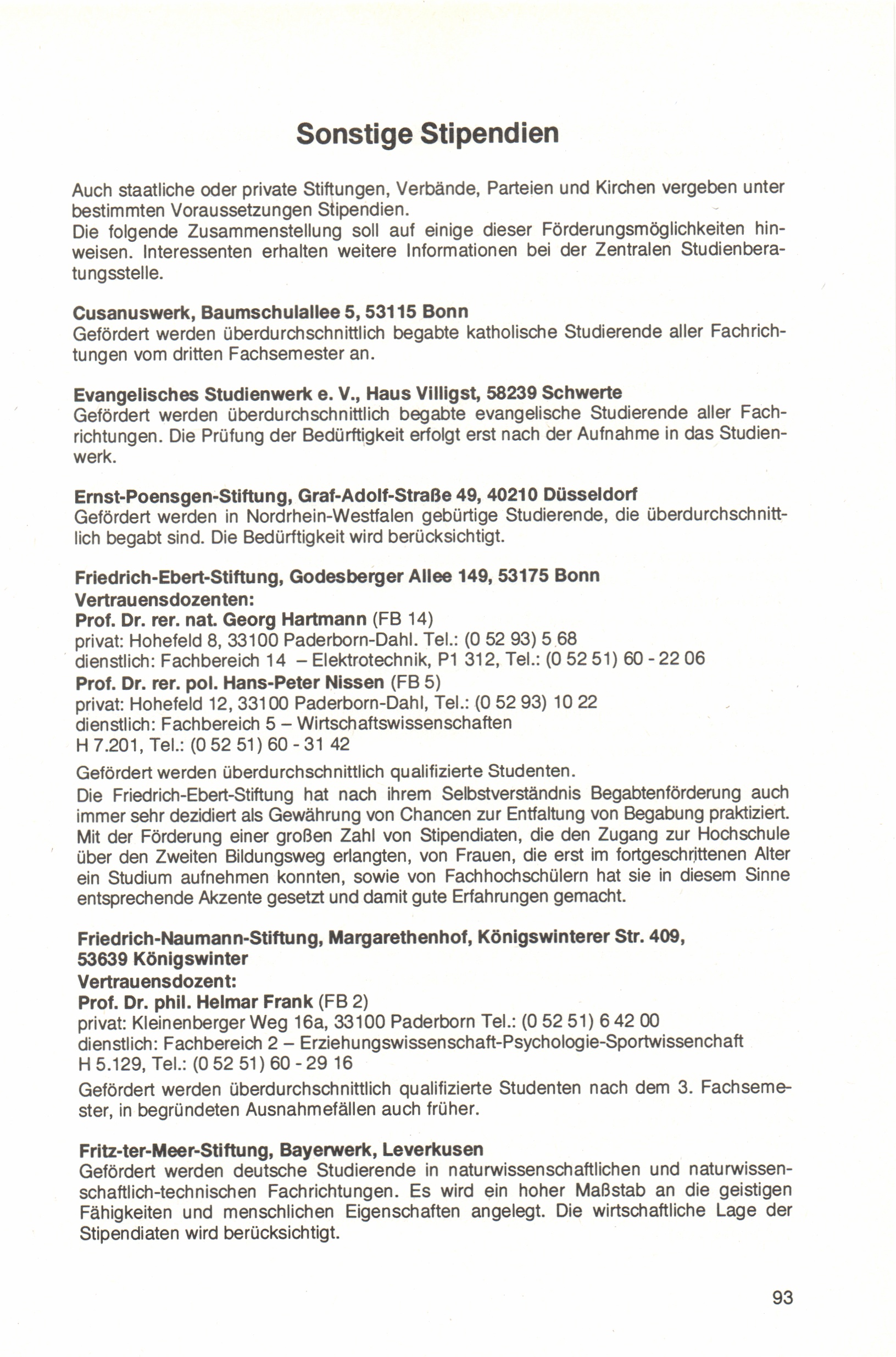 Sonstige Stipendien