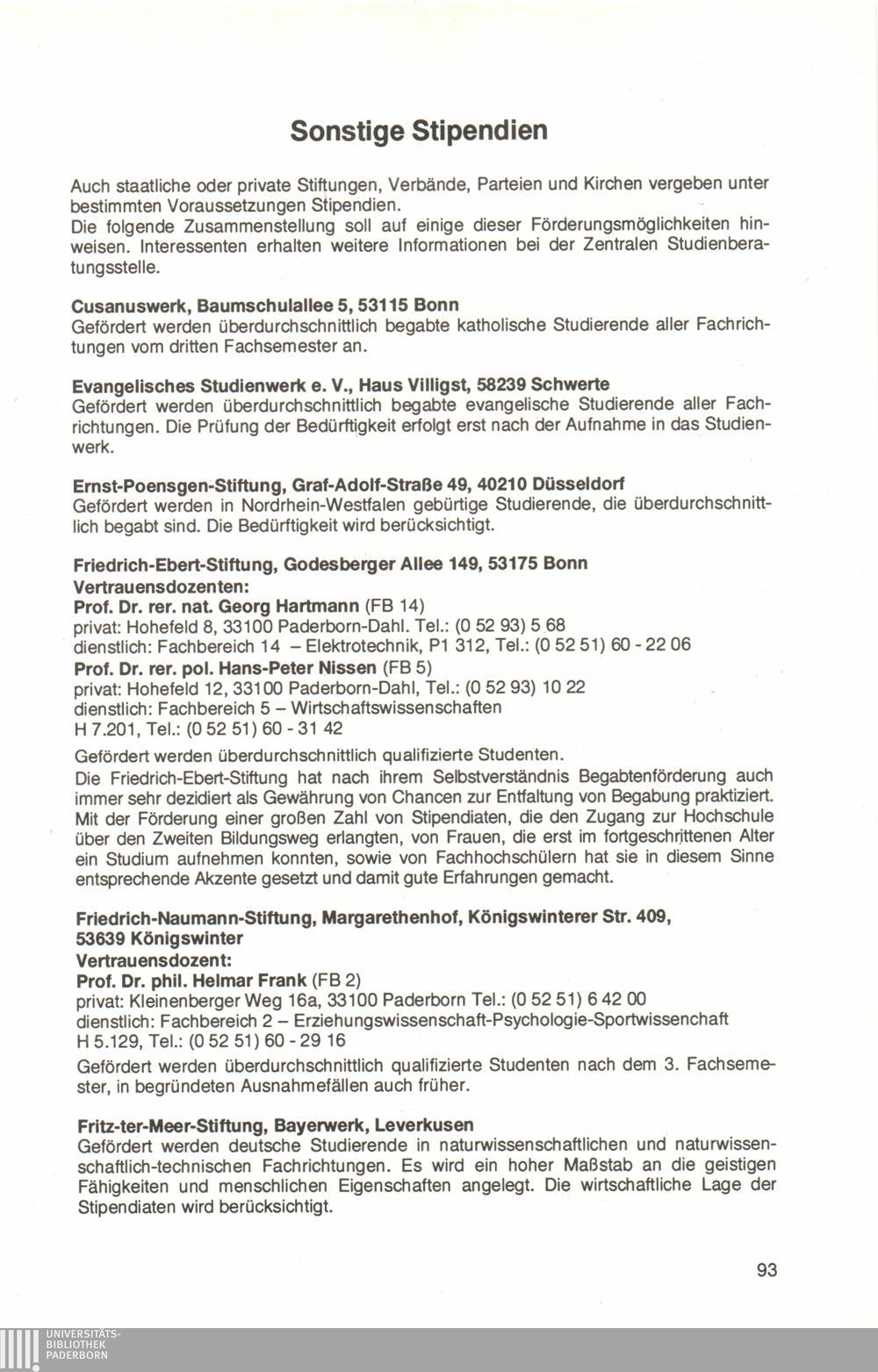 Personal- und Vorlesungsverzeichnis für die Universität Paderborn