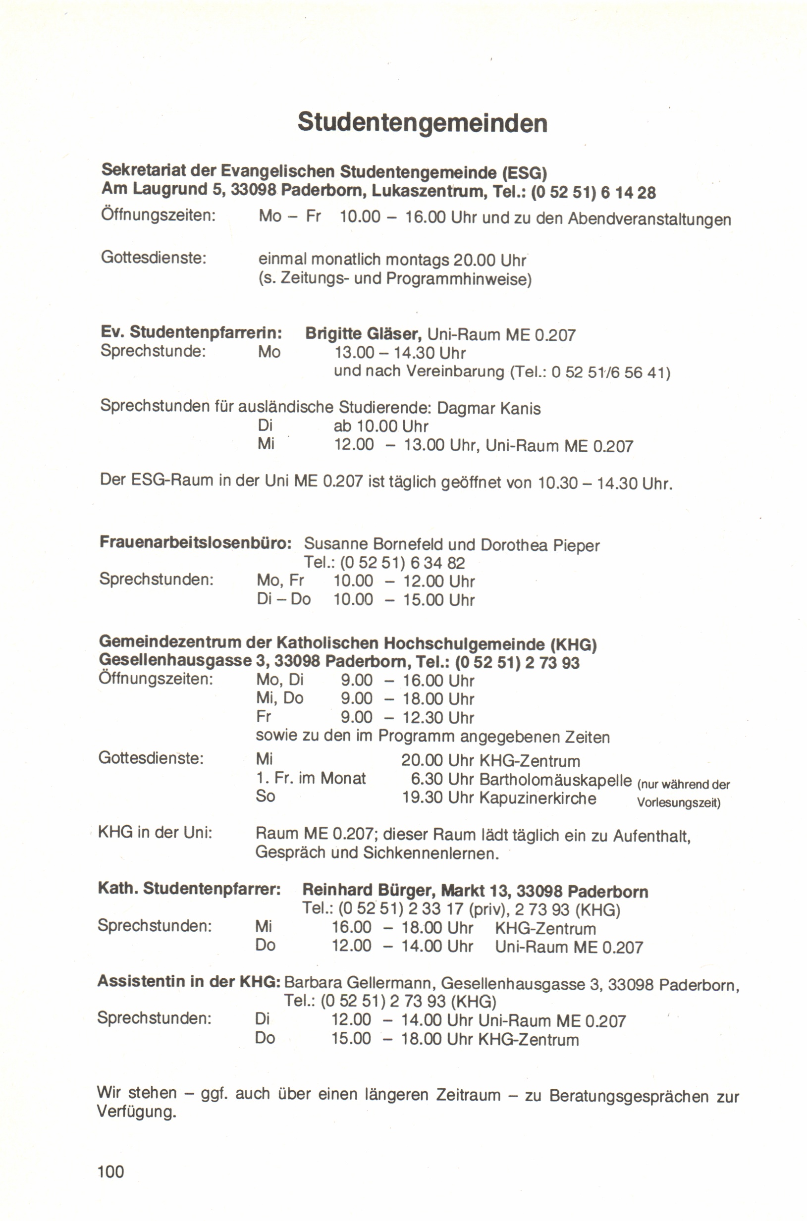 Personal- und Vorlesungsverzeichnis für die Universität Paderborn