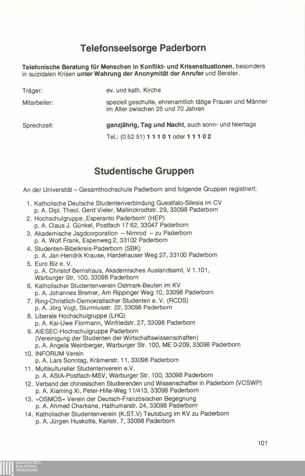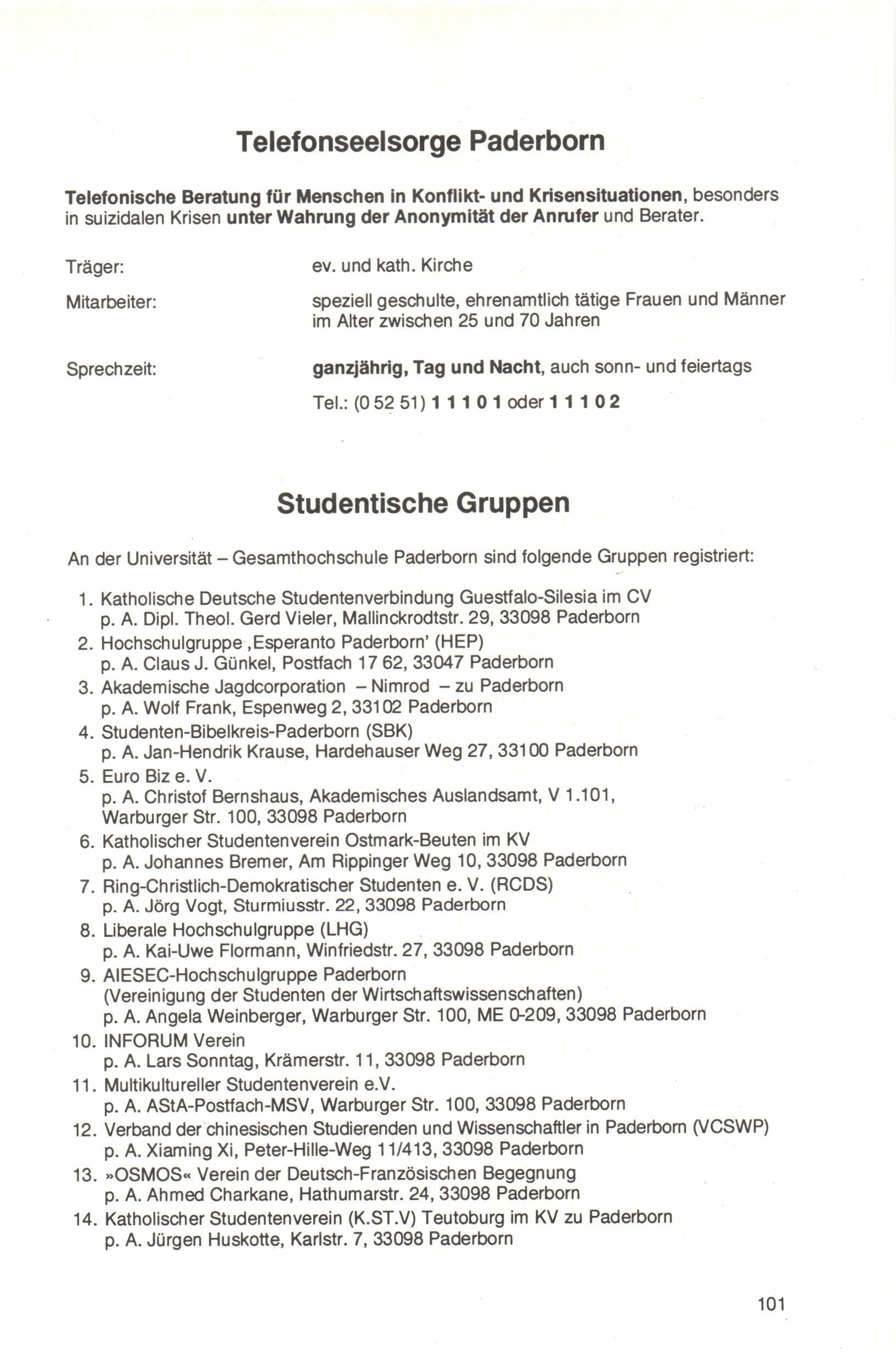 Studentische Gruppen/Telefonseelsorge