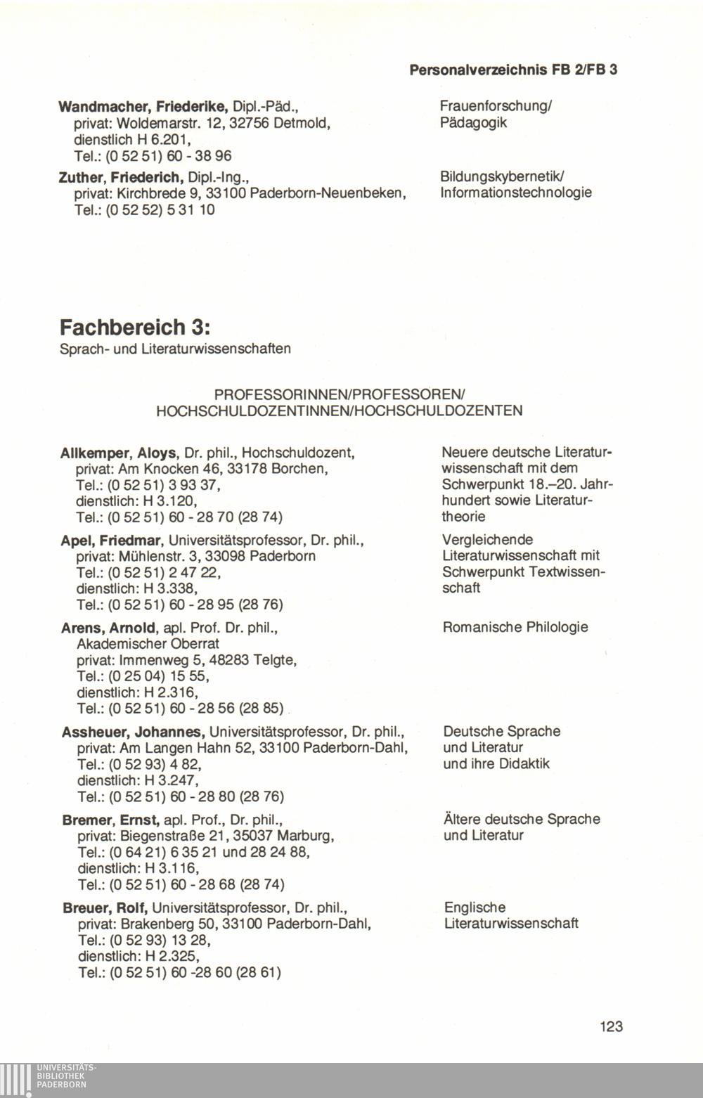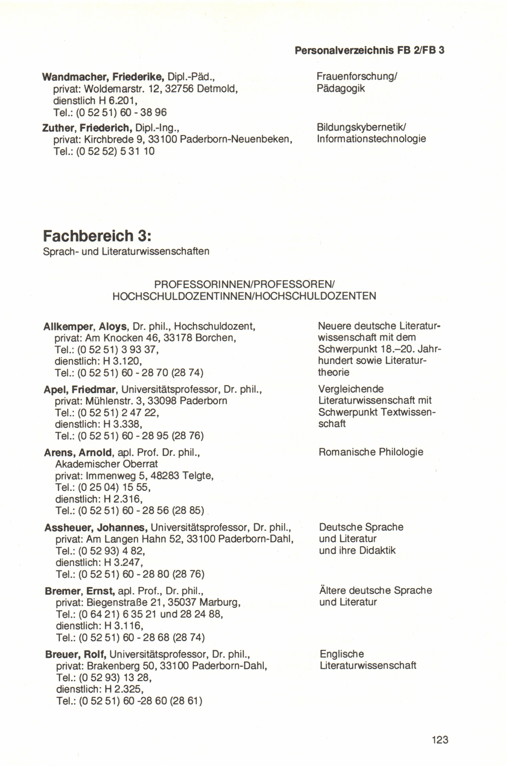 Personal- und Vorlesungsverzeichnis für die Universität Paderborn