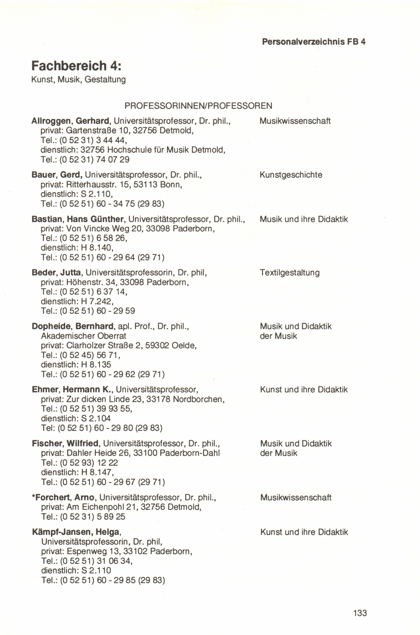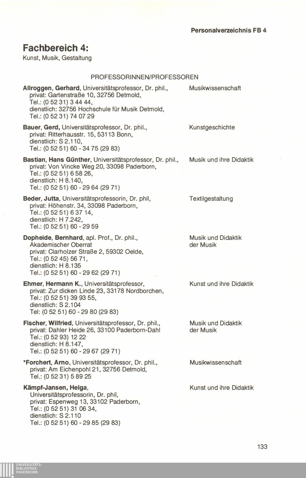 Personal- und Vorlesungsverzeichnis für die Universität Paderborn