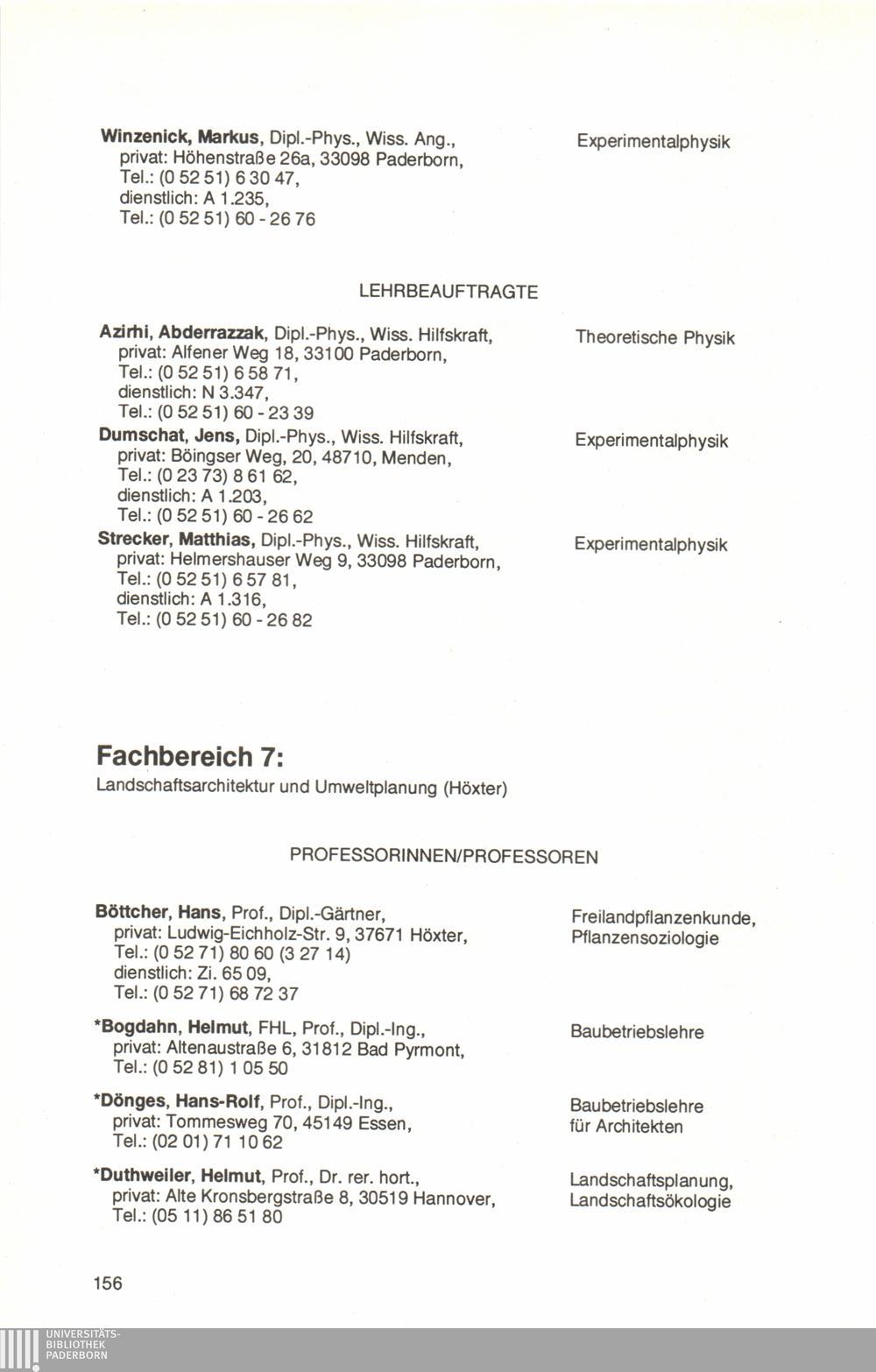 Personal- und Vorlesungsverzeichnis für die Universität Paderborn