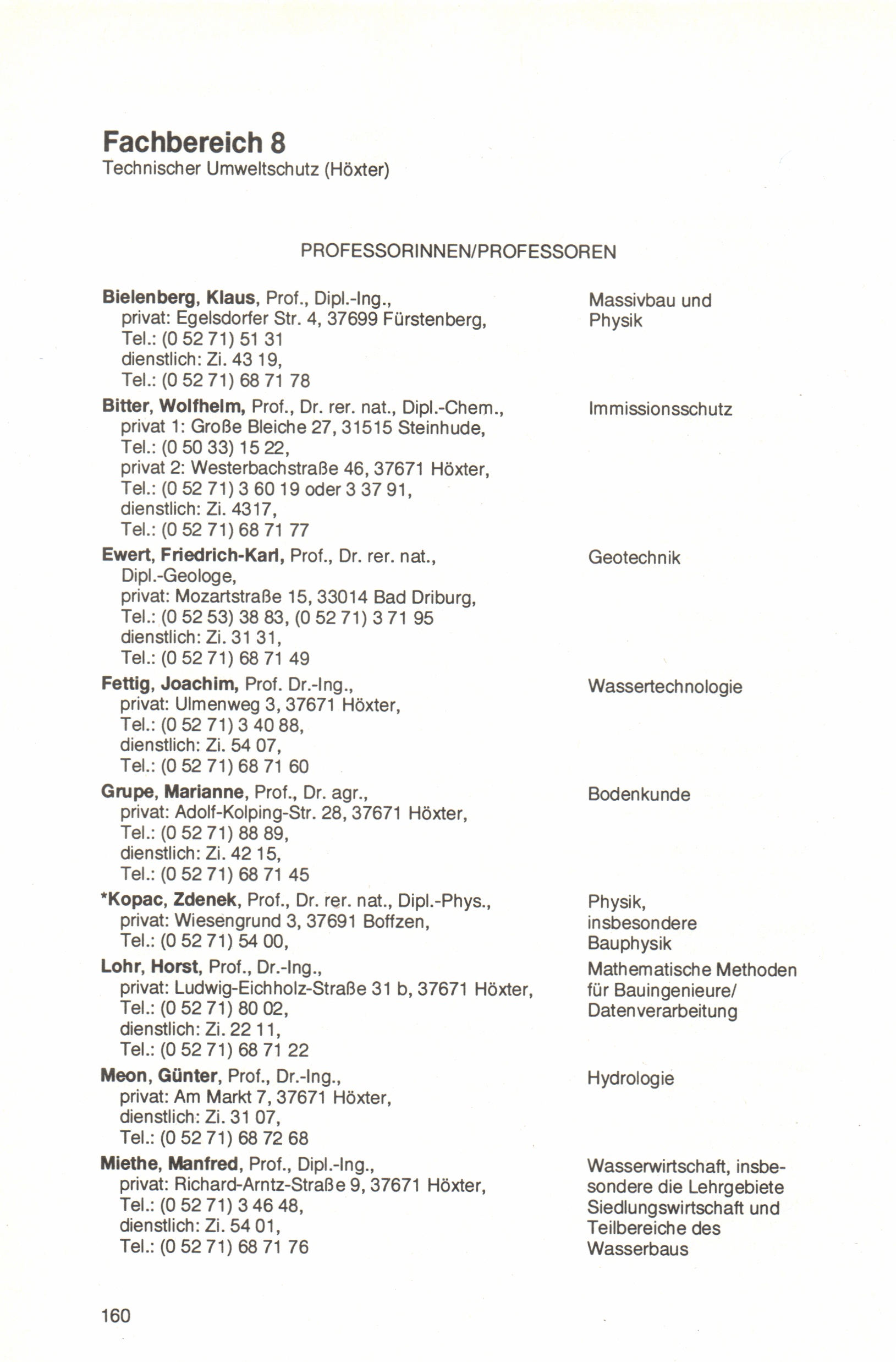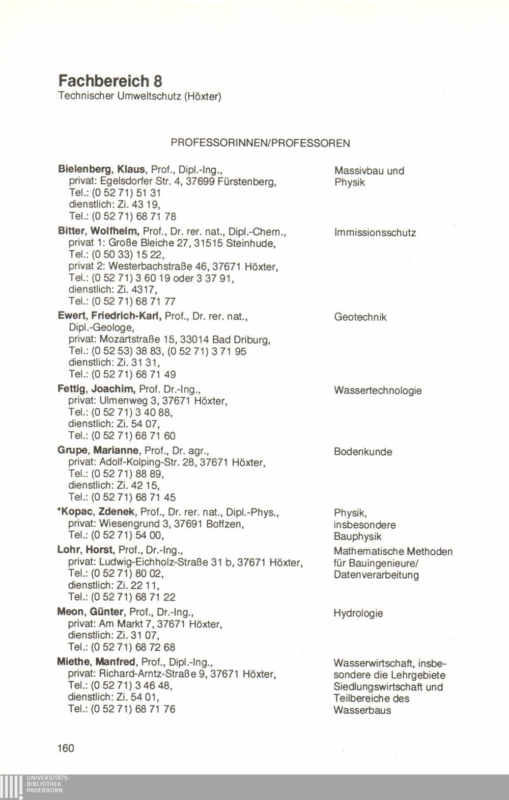 Fachbereich 8: Technischer Umweltschutz (Höxter)