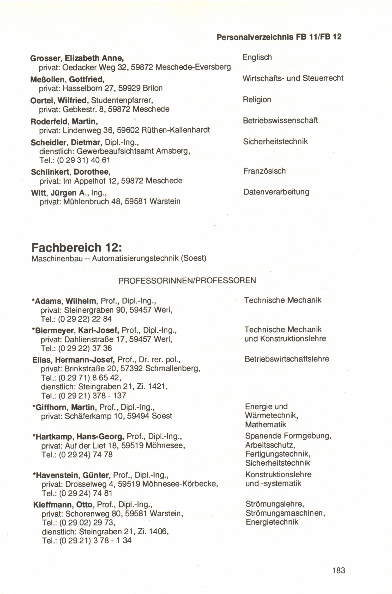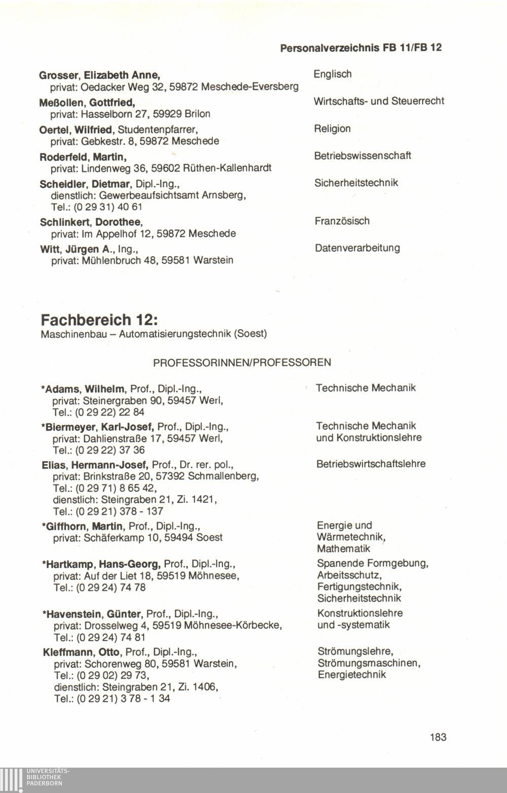 Fachbereich 12: Maschinenbau - Automatisierungstechnik (Soest)
