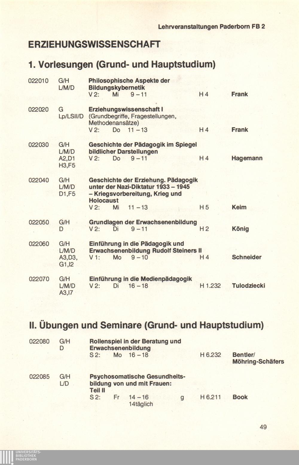 Personal- und Vorlesungsverzeichnis für die Universität Paderborn
